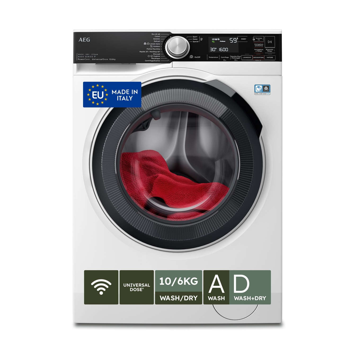 AEG LWR8T166YAB LAVASCIUGA, Caricamento frontale, capacità lavaggio 10 kg, capacità asciugatura 6 kg, 12 programmi, Profondità 63,1 cm, BIANCO, Classe A
