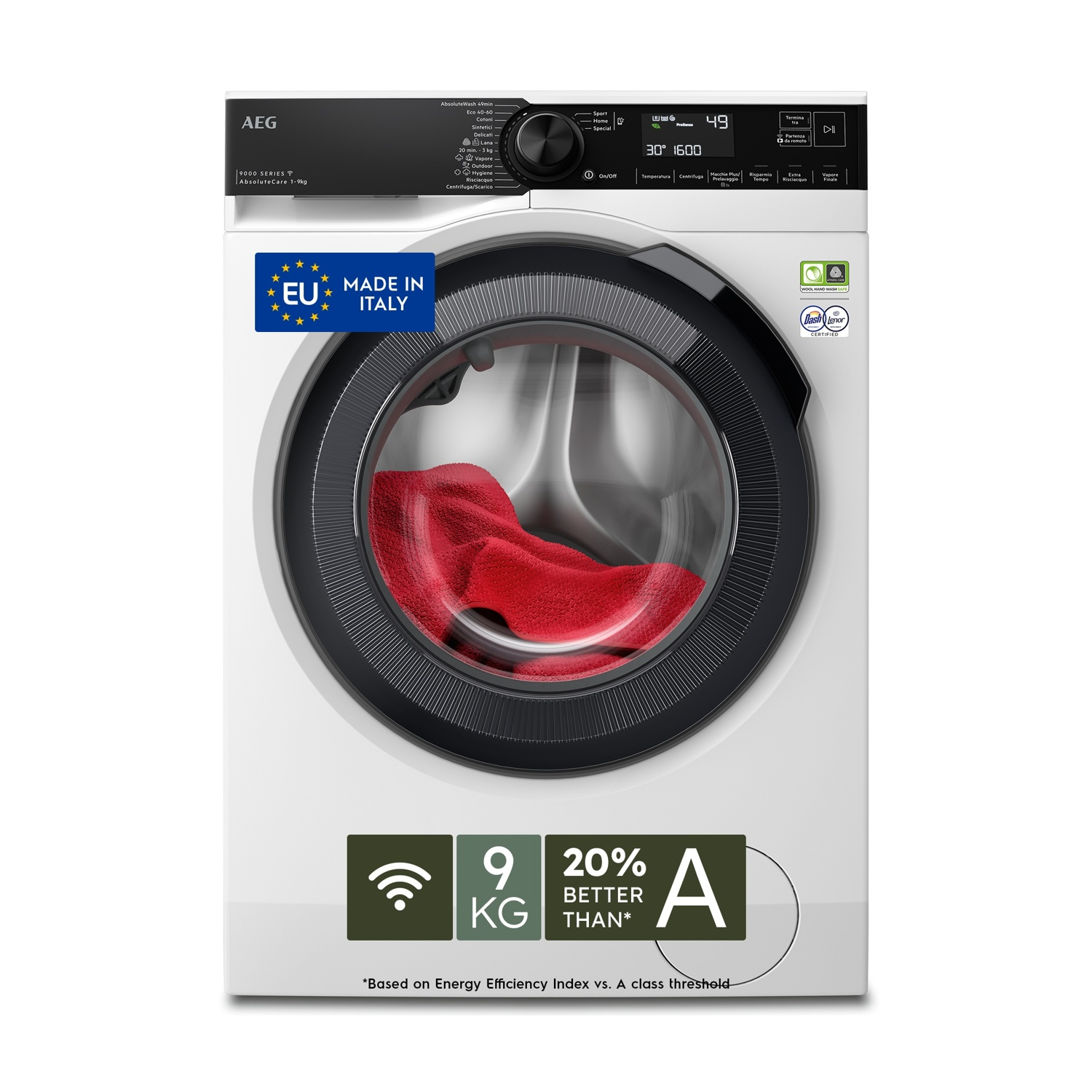 AEG LR9H96CBS LAVATRICE, Caricamento frontale, 9 kg, 12 programmi, Profondità 63,1 cm, BIANCO, livello rumorosità centrifuga 76 dB(A), Classe A