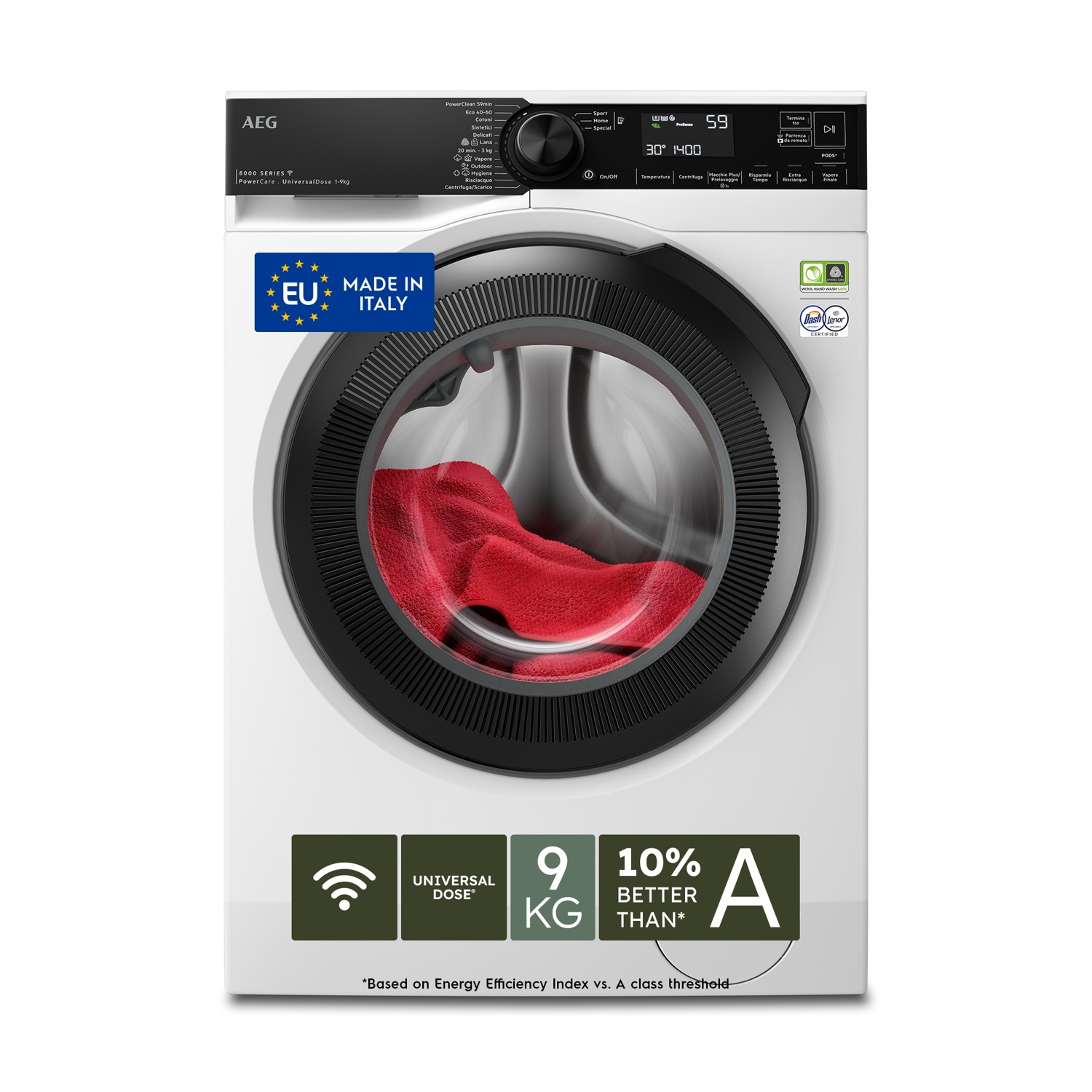 AEG LR8H94CBY LAVATRICE, Caricamento frontale, 9 kg, 12 programmi, Profondità 57,6 cm, BIANCO, livello rumorosità centrifuga 72 dB(A), Classe A
