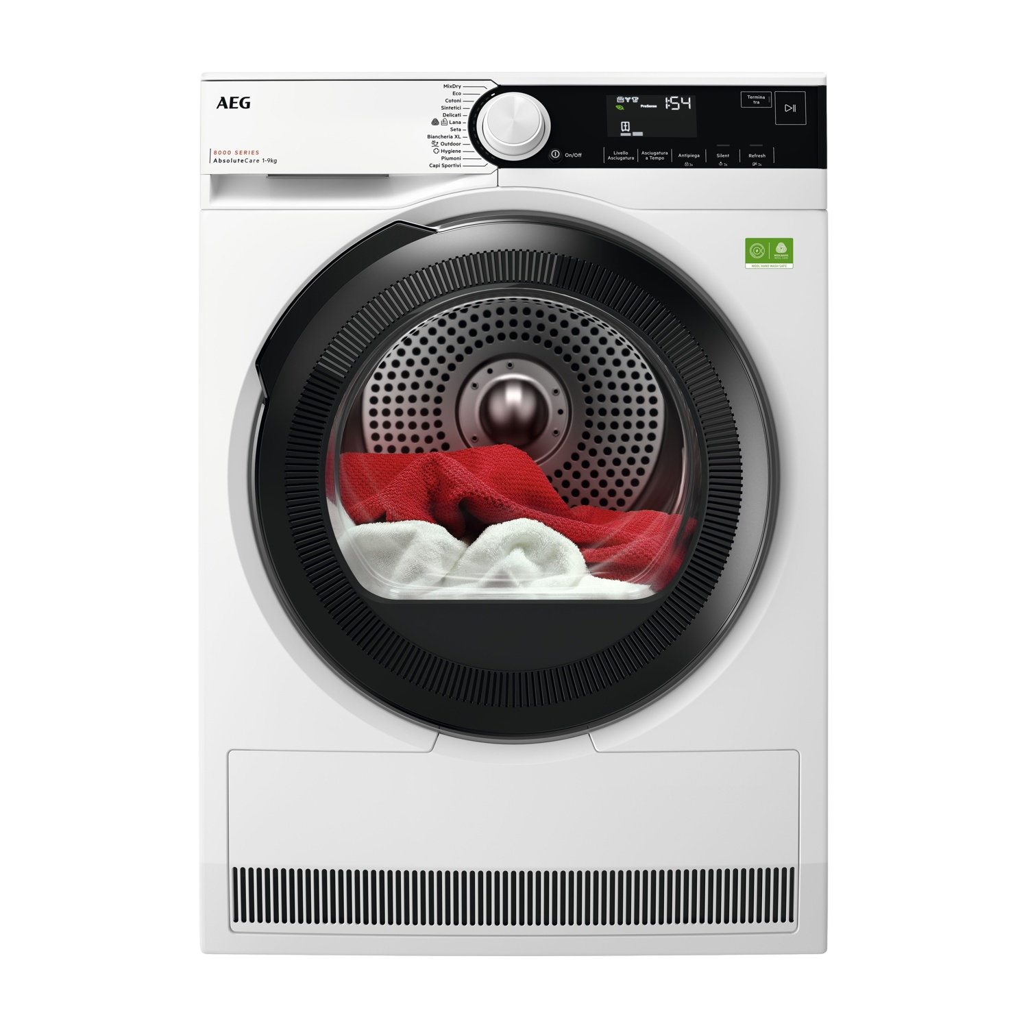 Asciugatrice AEG TR8HDCH9B, a pompa di calore, 9 Kg, profondità 63,6 cm, funzione refresh MixDry,  Eco, Classe B