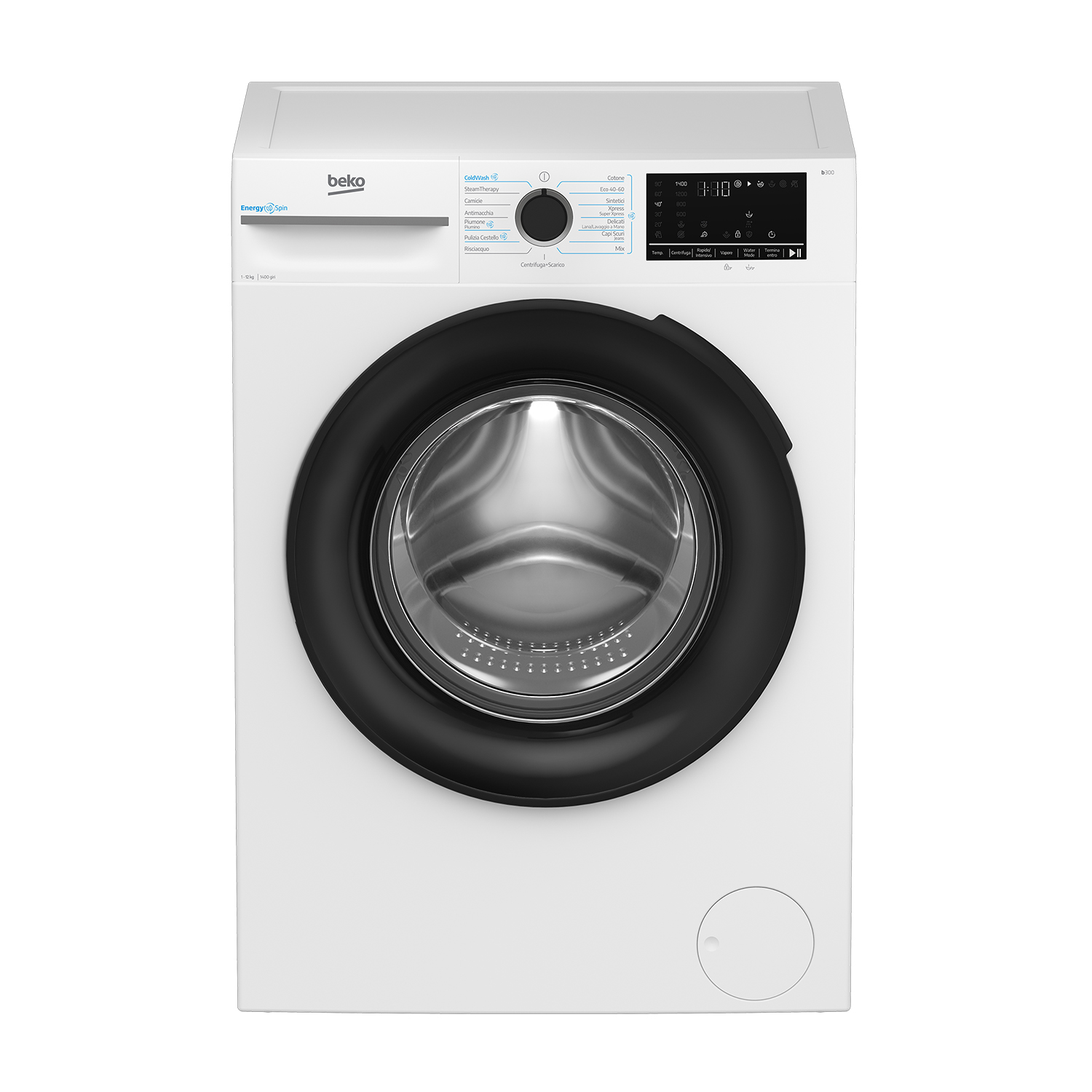 BEKO BMGWT41241B LAVATRICE, Caricamento frontale, 12 kg, 15 programmi, Profondità 630 mm, Nero, Bianco, livello rumorosità centrifuga 77 dB(A), Classe A