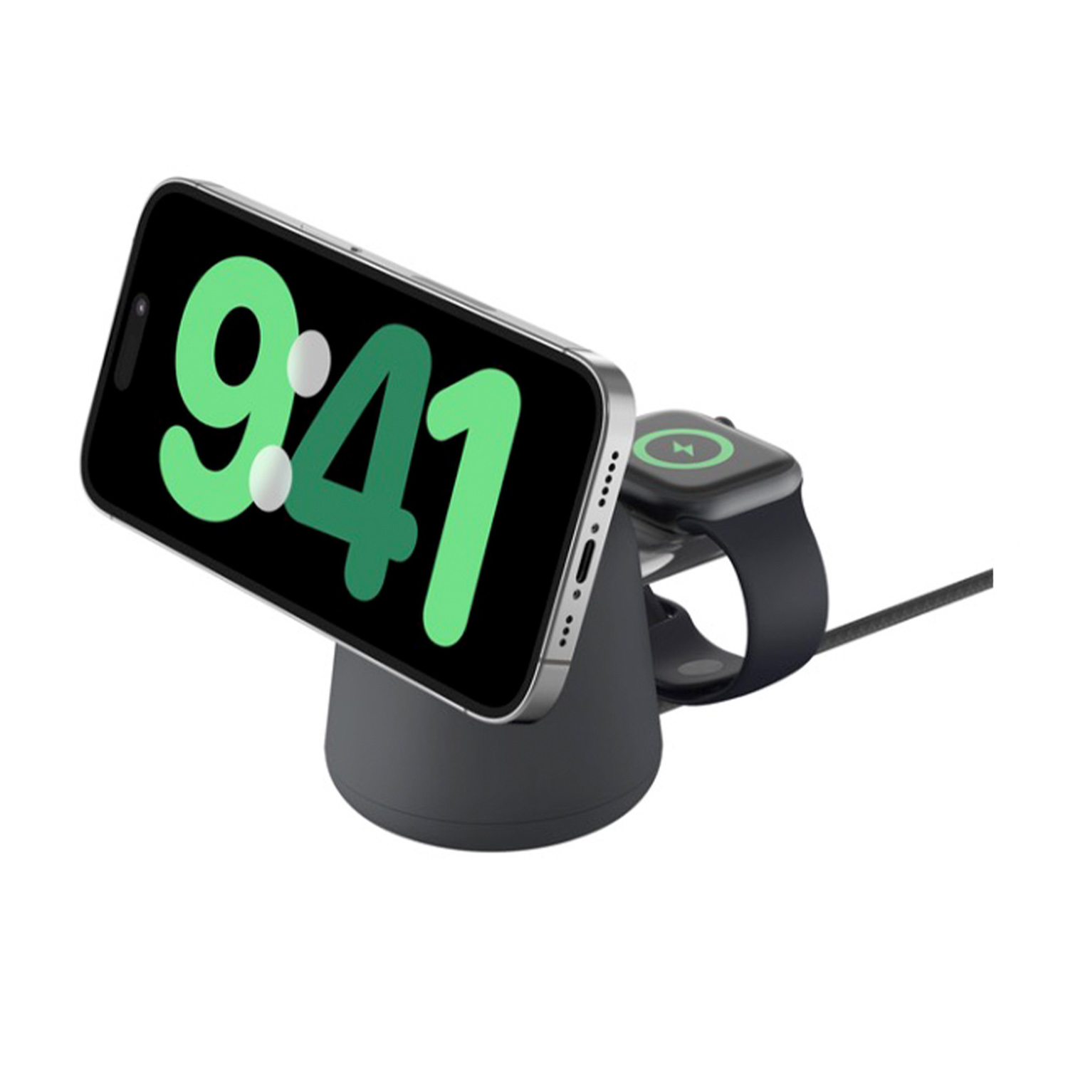 Caricabatterie Magsafe BELKIN BoostCharge Pro, stazione di ricarica wireless magnetica 2 in 1 da 15W per iPhone e Apple Watch, Carbone