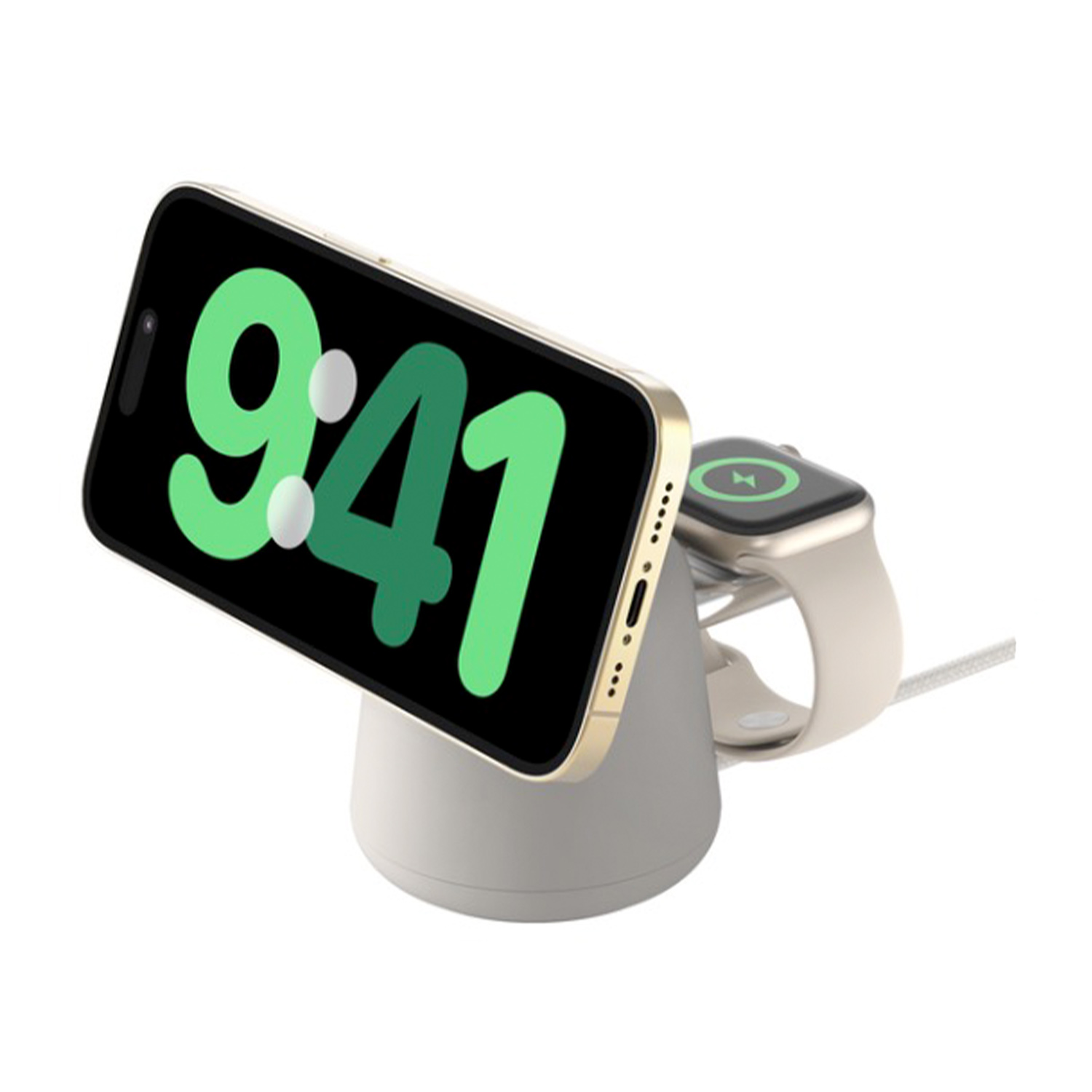 Caricabatterie Magsafe BELKIN BoostCharge Pro, stazione di ricarica wireless magnetica 2 in 1 da 15W per iPhone e Apple Watch, Sabbia
