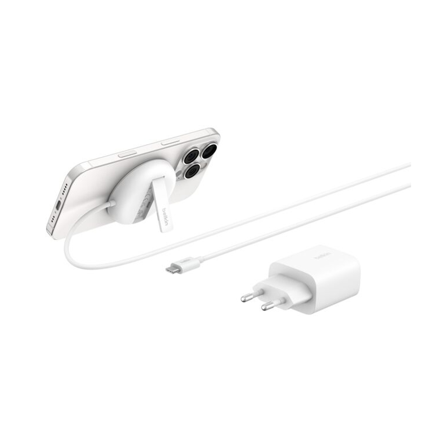 Caricabatterie Magsafe BELKIN BoostCharge Pro, caricatore wireless magnetico con Qi2 da 15W per iPhone con alimentatore, Bianco