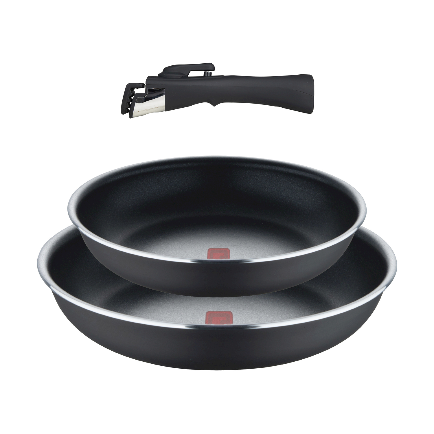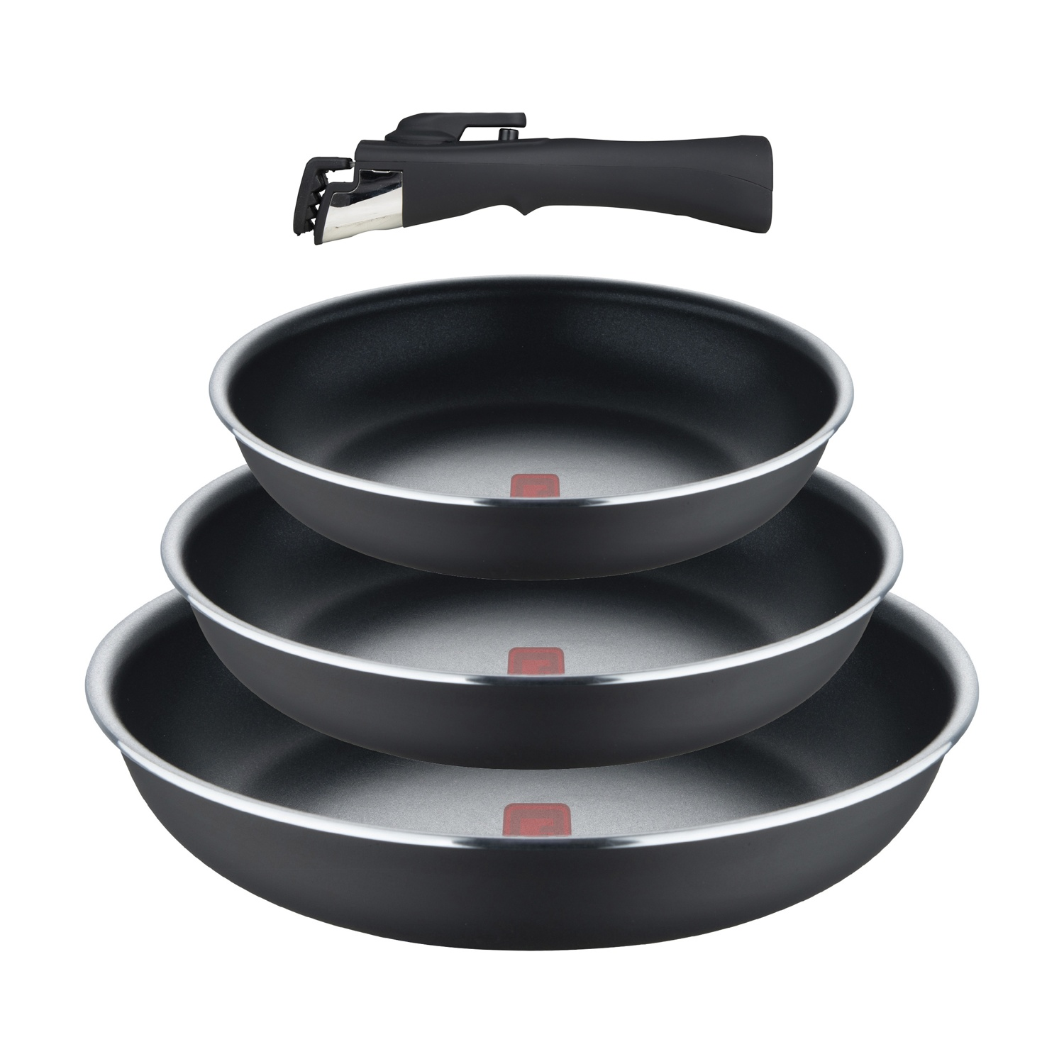 Manico removibile salvaspazio; Rivestimento antiaderente ILAG ESSENTIAL a due strati; Fondo adatto a tutti i piani cottura, inclusa l'induzione Utilizzabili (senza manico) anche in forno fino ad una temperatura di 240º.