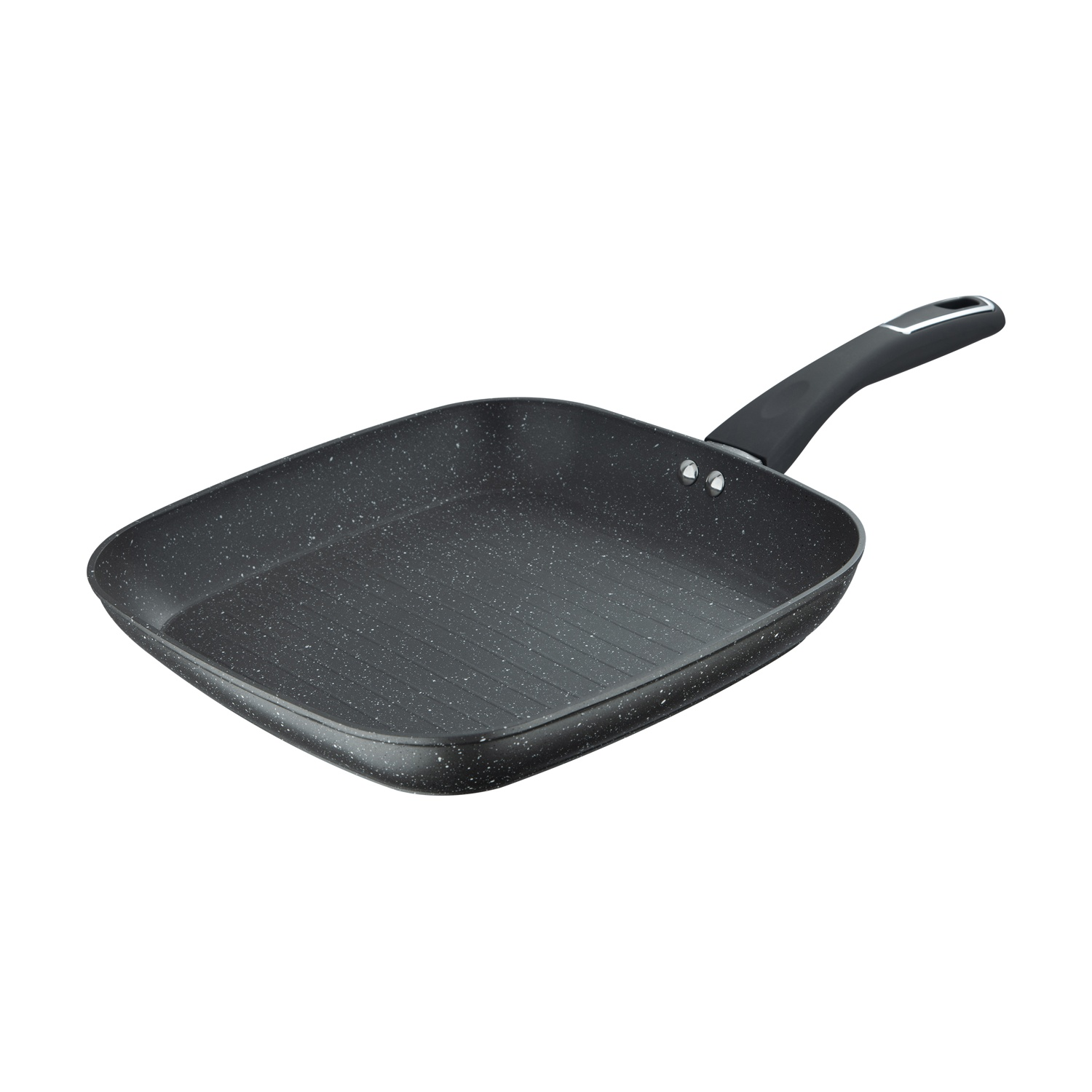 Bistecchiera quadrata 28cm in alluminio forgiato; Rivestimento Marble + antigraffio, antiaderente e facile da lavare; Base in acciaio; manico con effetto soft-touch; Il fondo è adatto a tutti i piani cottura disponibili sul mercato.