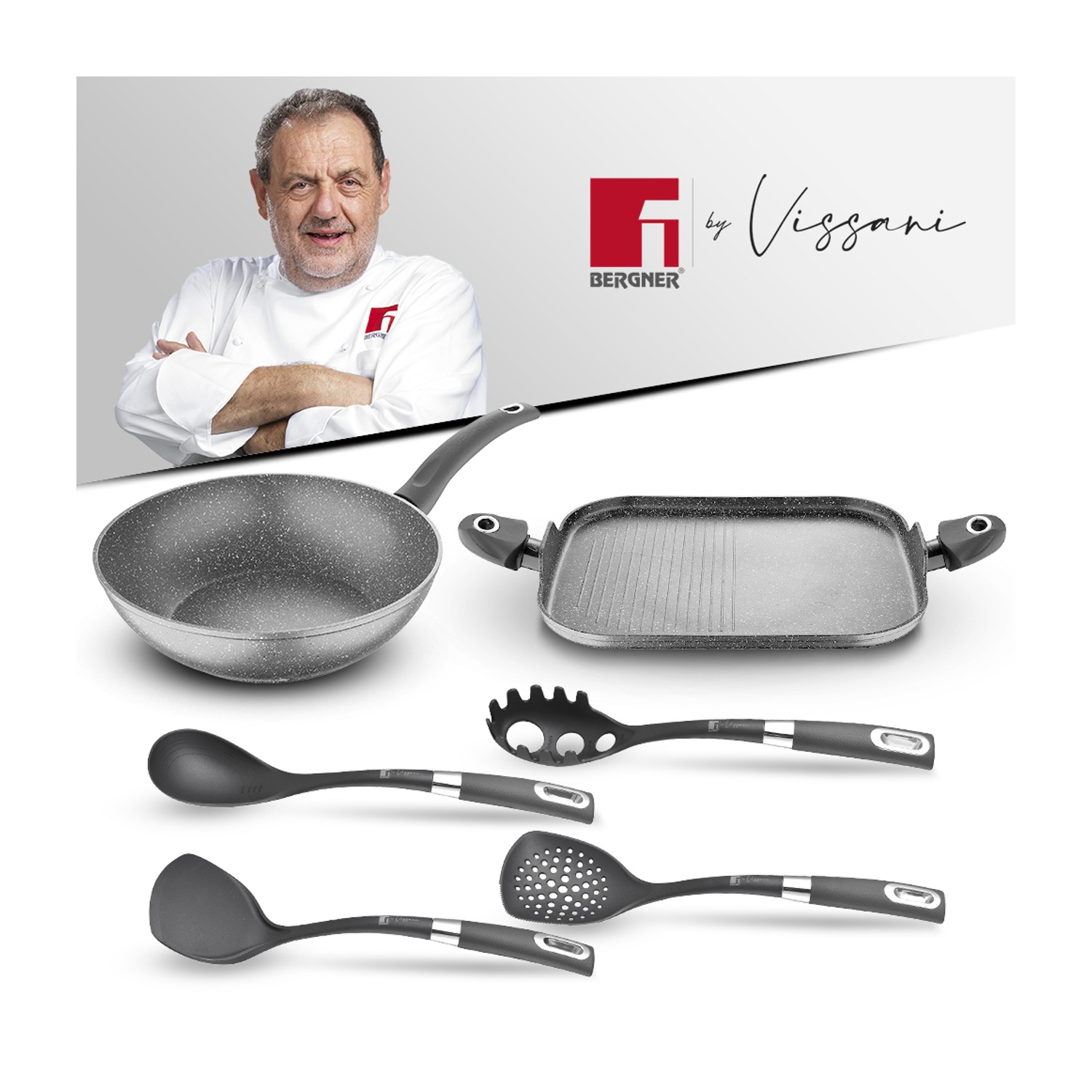 SET 2 PADELLE+UTENSILI BERGNER SET COTTURA 6PZ VISSANI