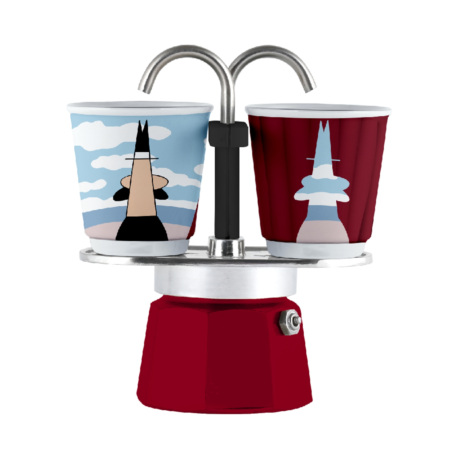 Moka Bialetti Set Mini 2 tazze Magrite, Adatta a piani cottura a gas, Alluminio