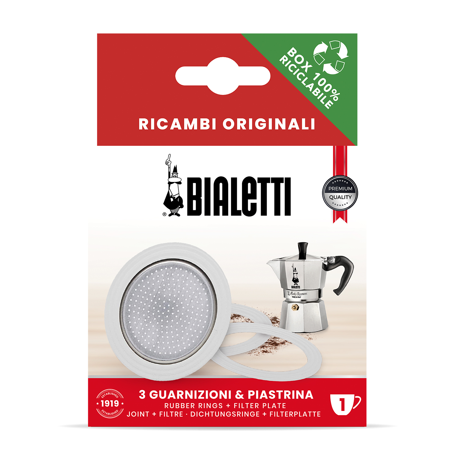 Bialetti Ricambi, Include 3 Guarnizioni e 1 Piastrina, Compatibili con Moka Express, Dama, Elettrica e Mini Express, 2 Tazze