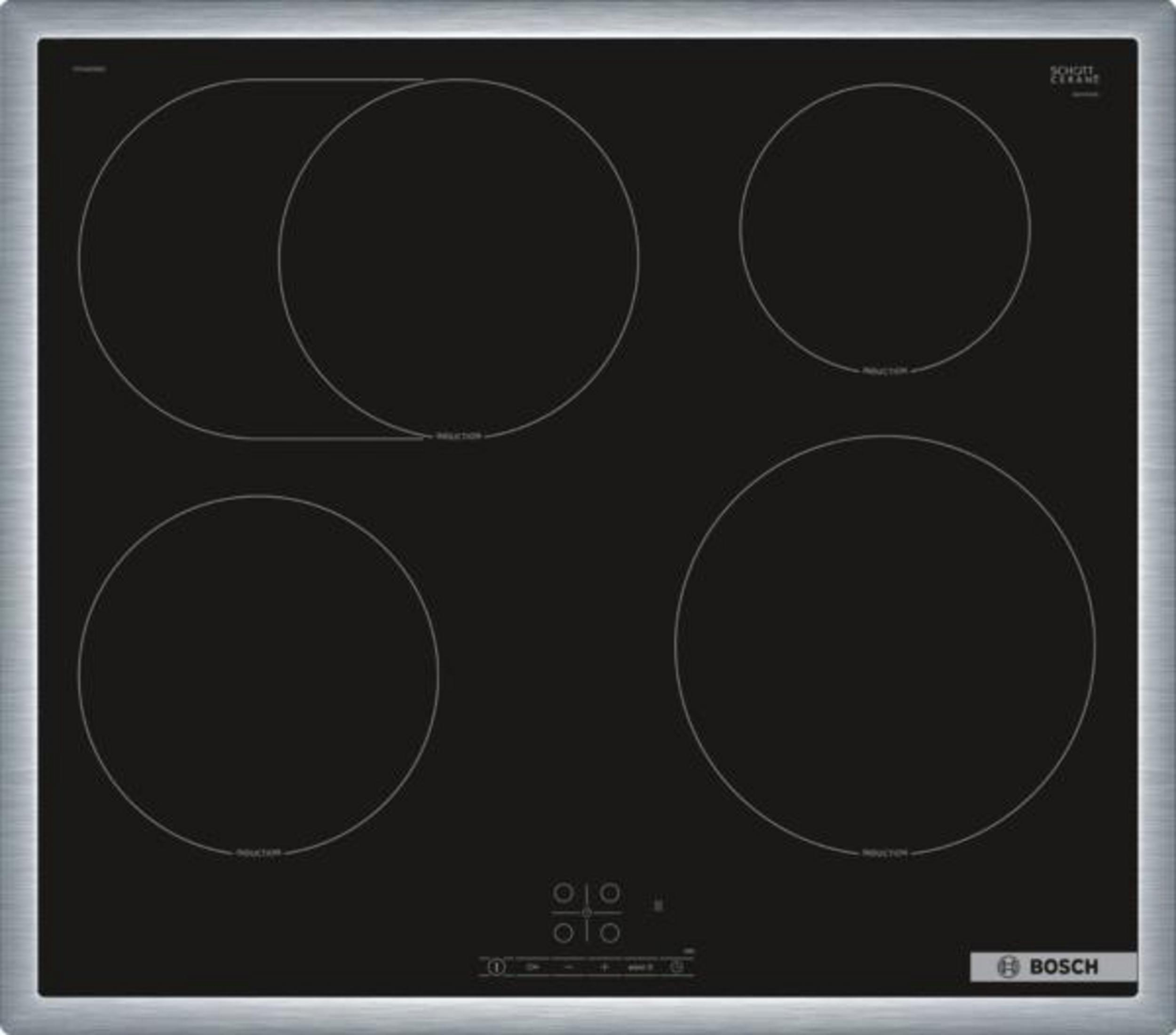 BOSCH Serie 6 PVS64RHB1E PIANO COTTURA A INDUZIONE, 4 zone di cotura, dimensioni: L 583 mm, P 513 mm, piano in Vetroceramica, Nero