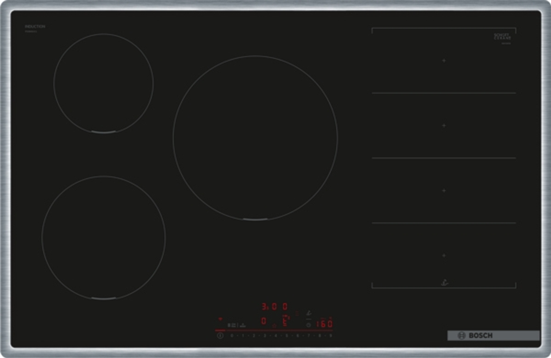 BOSCH Serie 6 PCC6A5I90 PIANO COTTURA, 3 zone di cotura, dimensioni: L 582 mm, P 520 mm, piano in Acciaio inossidabile, Acciaio inox