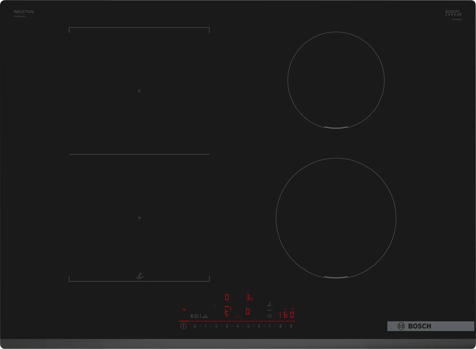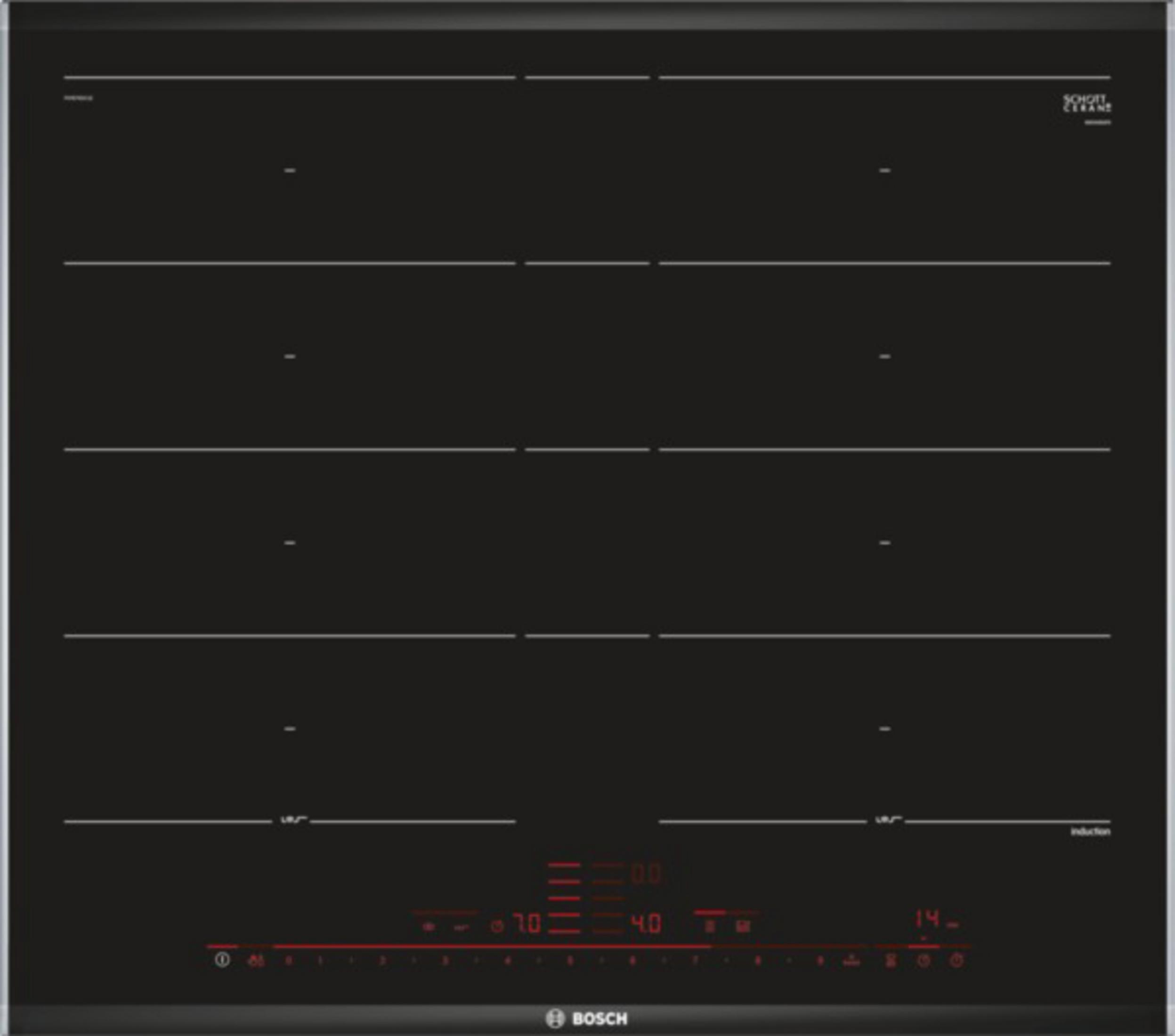 BOSCH Serie 6 PVS731HC1E PIANO COTTURA A INDUZIONE, 4 zone di cotura, dimensioni: L 710 mm, P 522 mm, piano in Vetroceramica, Nero