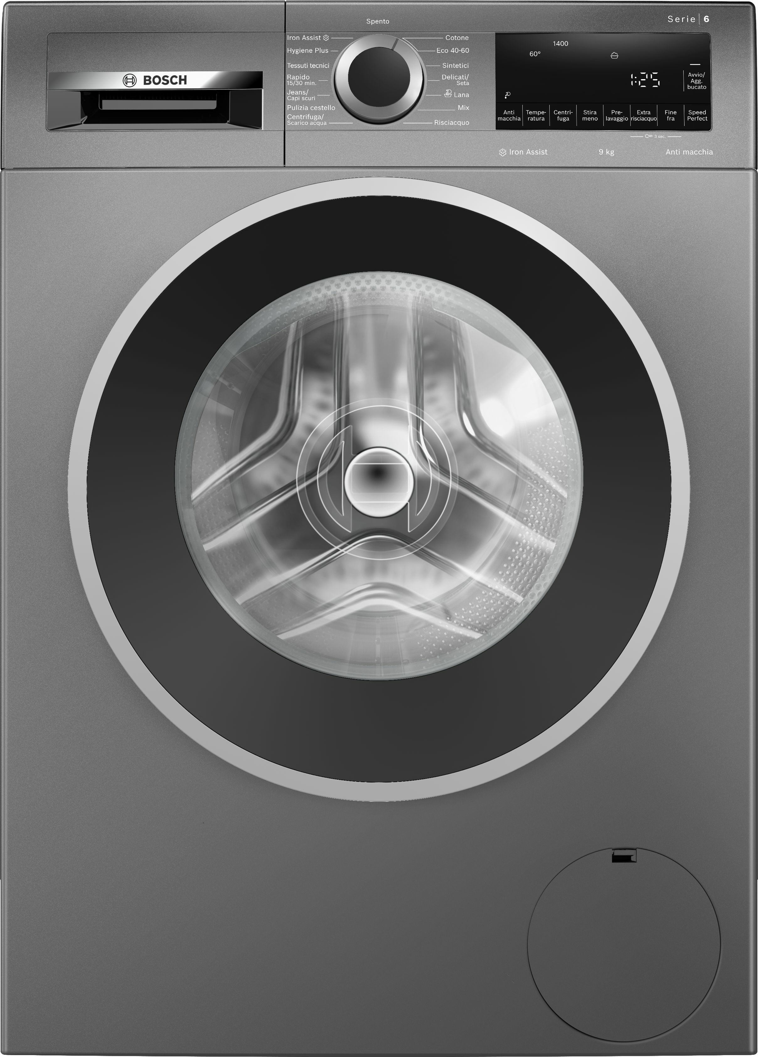 BOSCH WGG244ZRIT Serie 6 LAVATRICE, Caricamento frontale, 9 kg, 16 programmi, Profondità 590 mm, Grigio, livello rumorosità centrifuga 71 dB(A), Classe A