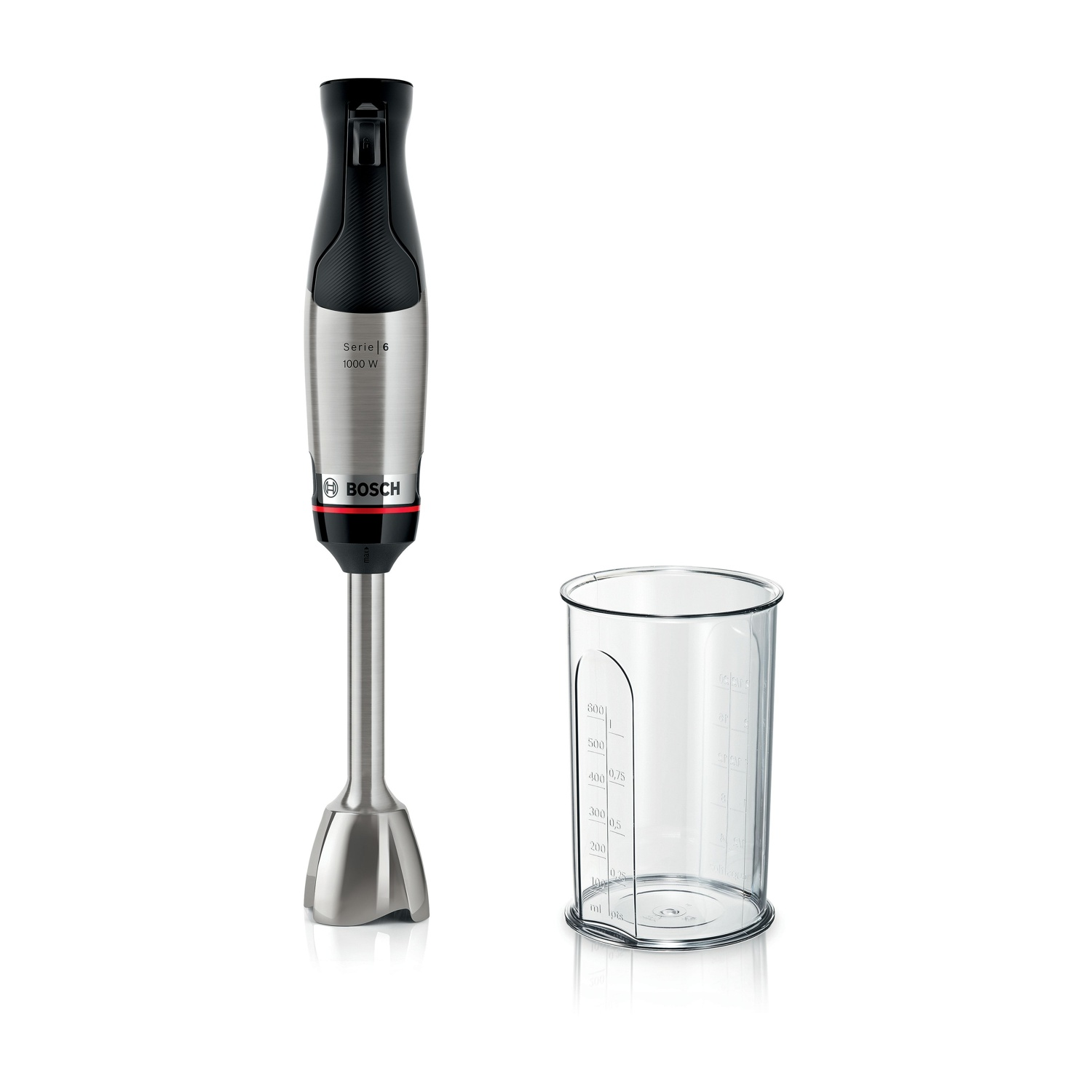 FRULLATORE AD IMMERSIONE, 1x Bicchiere graduato con coperchio, 1x Piede mixer in acciaio inox
