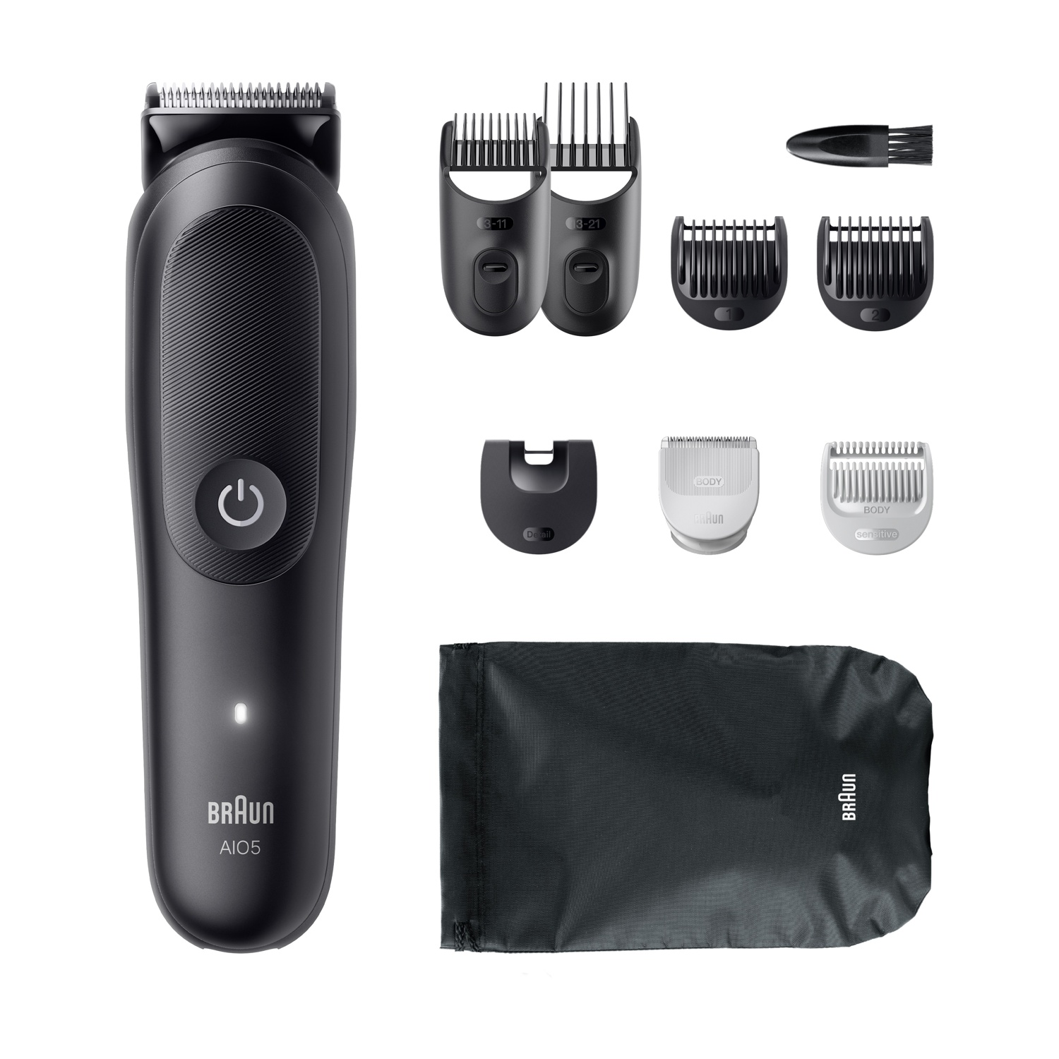 Regolabarba BRAUN SERIES 3 AIO, All-in-One, 14 impostazioni di lunghezza, 6 pettini e 1 spazzola per la pulizia, con custodia, per barba e capelli
