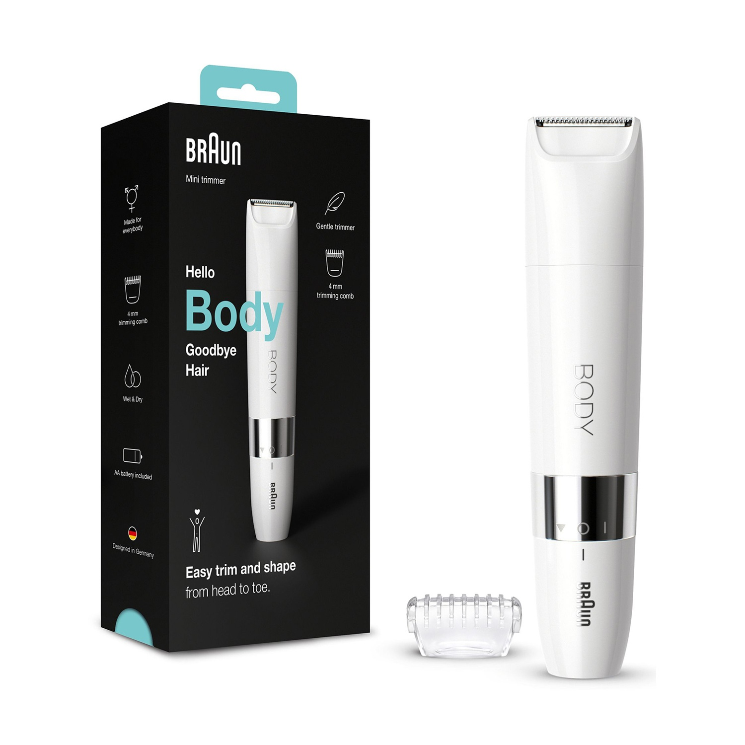 Rasoio minirifinitore BRAUN BS1000 per il corpo, delicato e compatto, Wet&Dry, con testina di precisione e testina zone sensibili