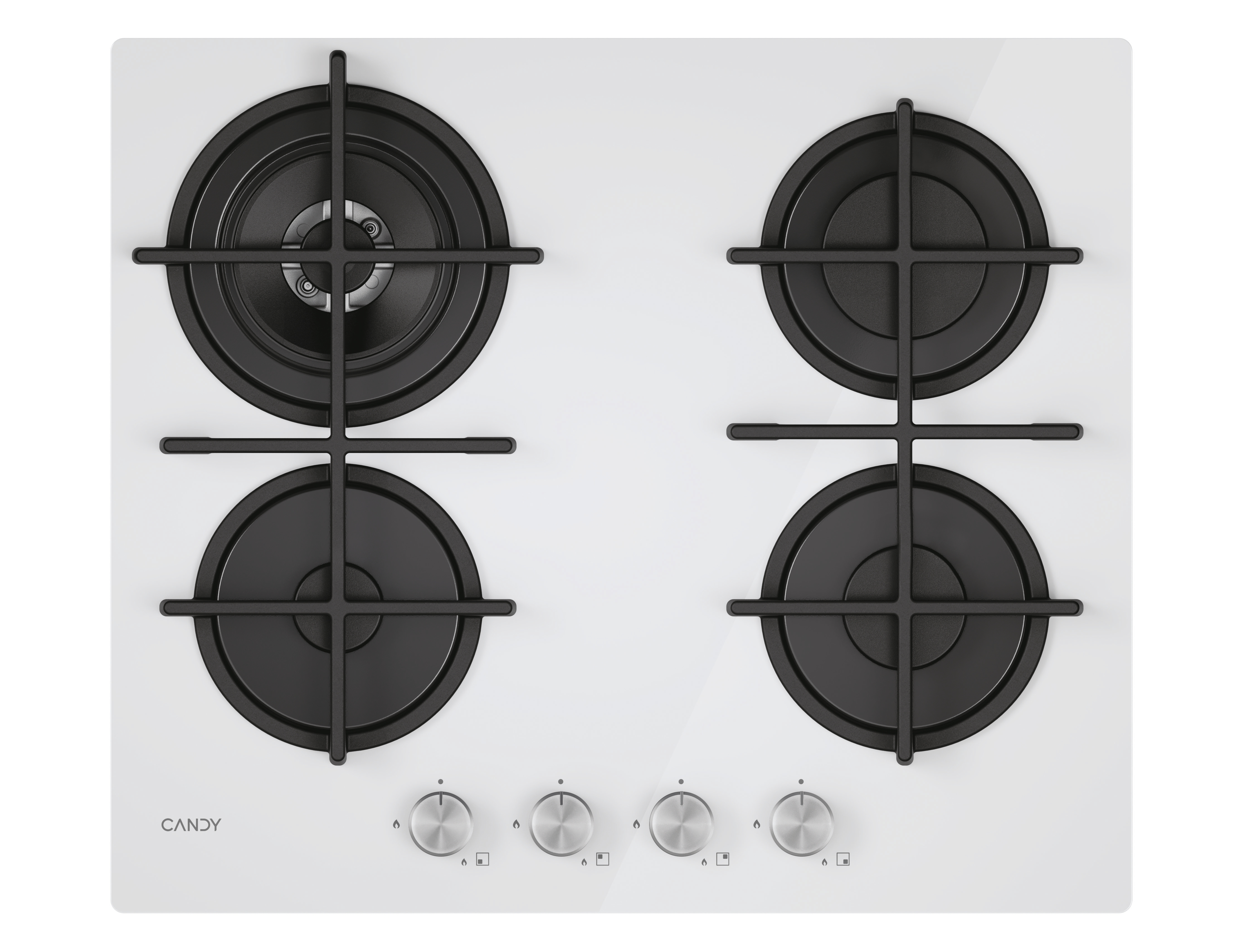 CANDY Moderna CVG6BR4WTW PIANO COTTURA, 4 zone di cotura, dimensioni: L 595 mm, P 510 mm, piano in Vetro float, Bianco