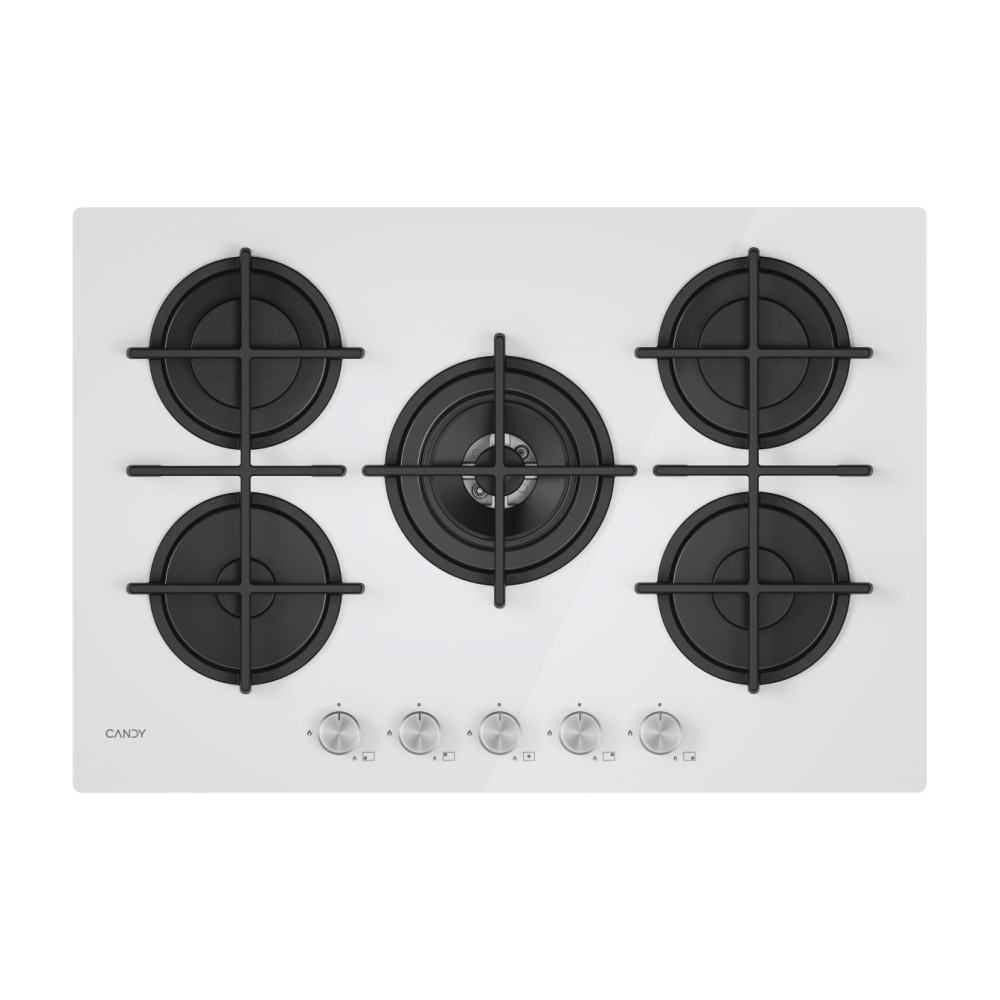 CANDY Moderna CVG74WTW PIANO COTTURA, 5 zone di cotura, dimensioni: L 745 mm, P 510 mm, piano in Vetro float, Bianco