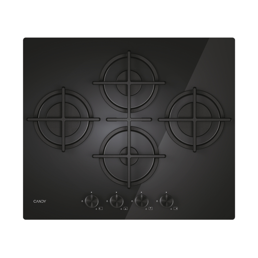 CANDY Moderna CVG6BR4WTB PIANO COTTURA, 4 zone di cotura, dimensioni: L 595 mm, P 510 mm, piano in Vetro float, Nero