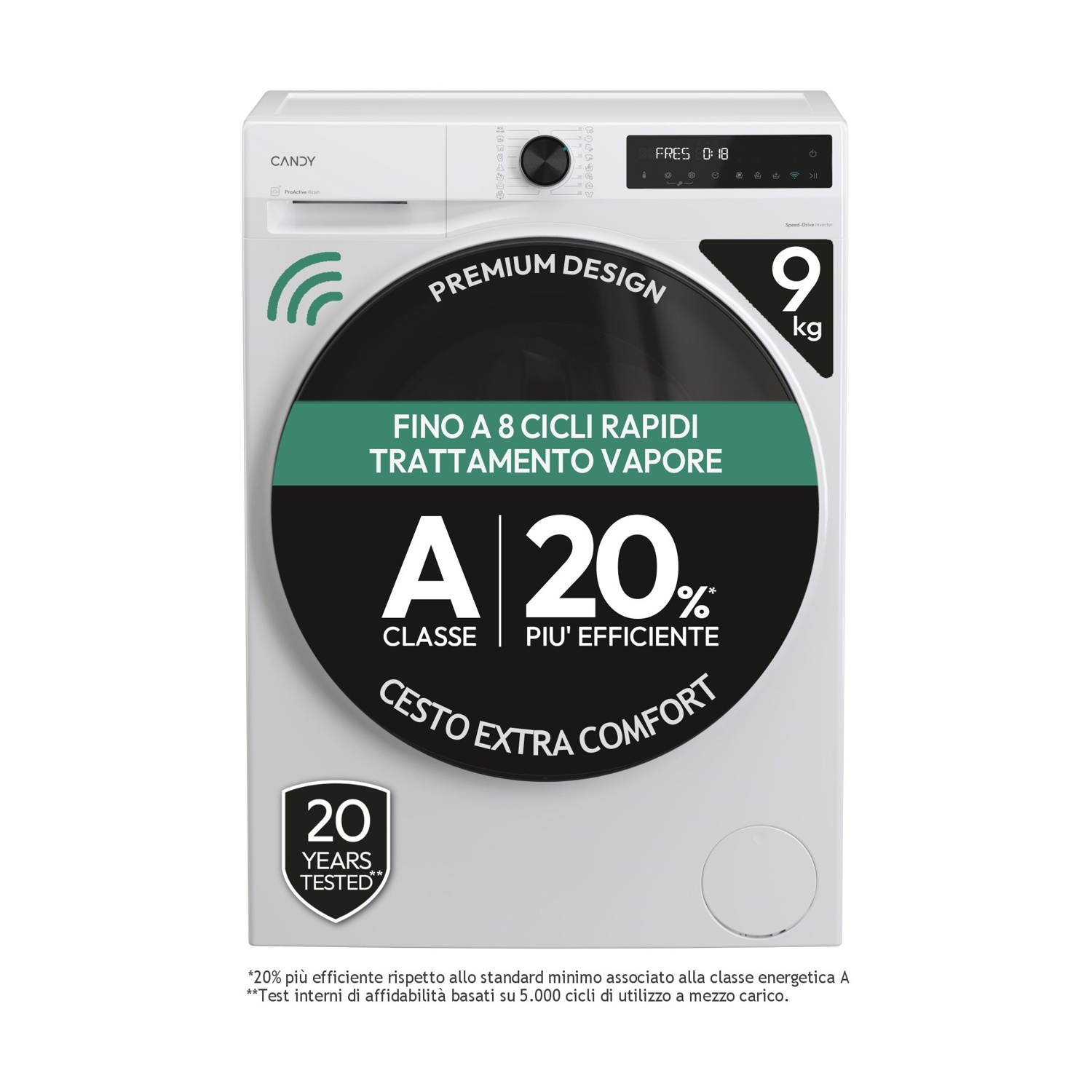 CANDY BP 49BL8-S LAVATRICE, Caricamento frontale, 9 kg, 16 programmi, Profondità 58 cm, Bianco, livello rumorosità centrifuga 72 dB(A), Classe A