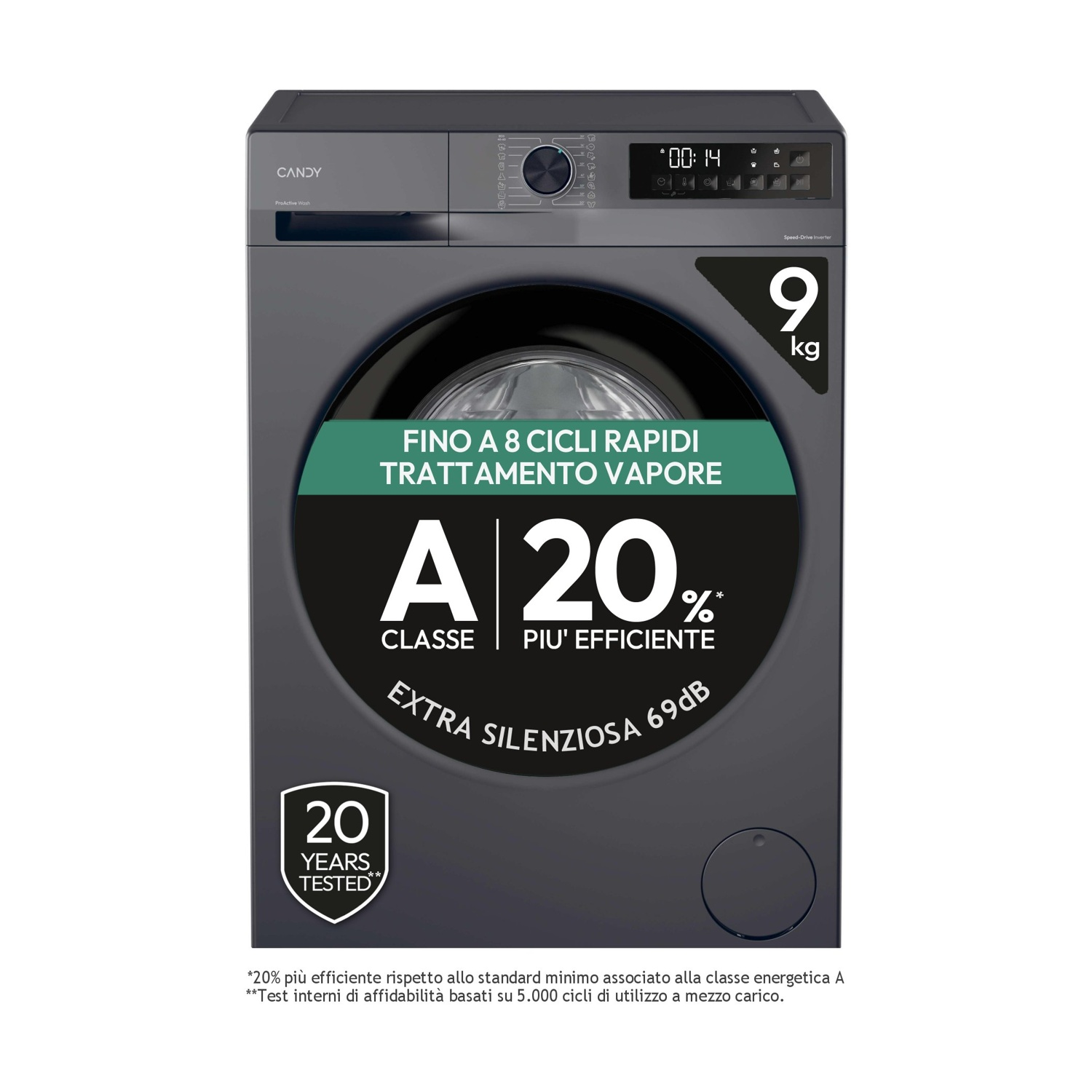 CANDY GD 49B8G-S LAVATRICE, Caricamento frontale, 9 kg, 16 programmi, Profondità 60,1 cm, ANTRACITE, livello rumorosità centrifuga 69 dB(A), Classe A