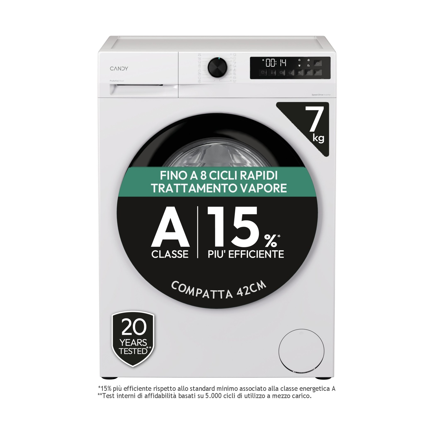 CANDY GD 27SB7-S LAVATRICE, Caricamento frontale, 7 kg, Profondità 42,4 cm, Bianco, Nero, livello rumorosità centrifuga 72 dB(A), Classe A