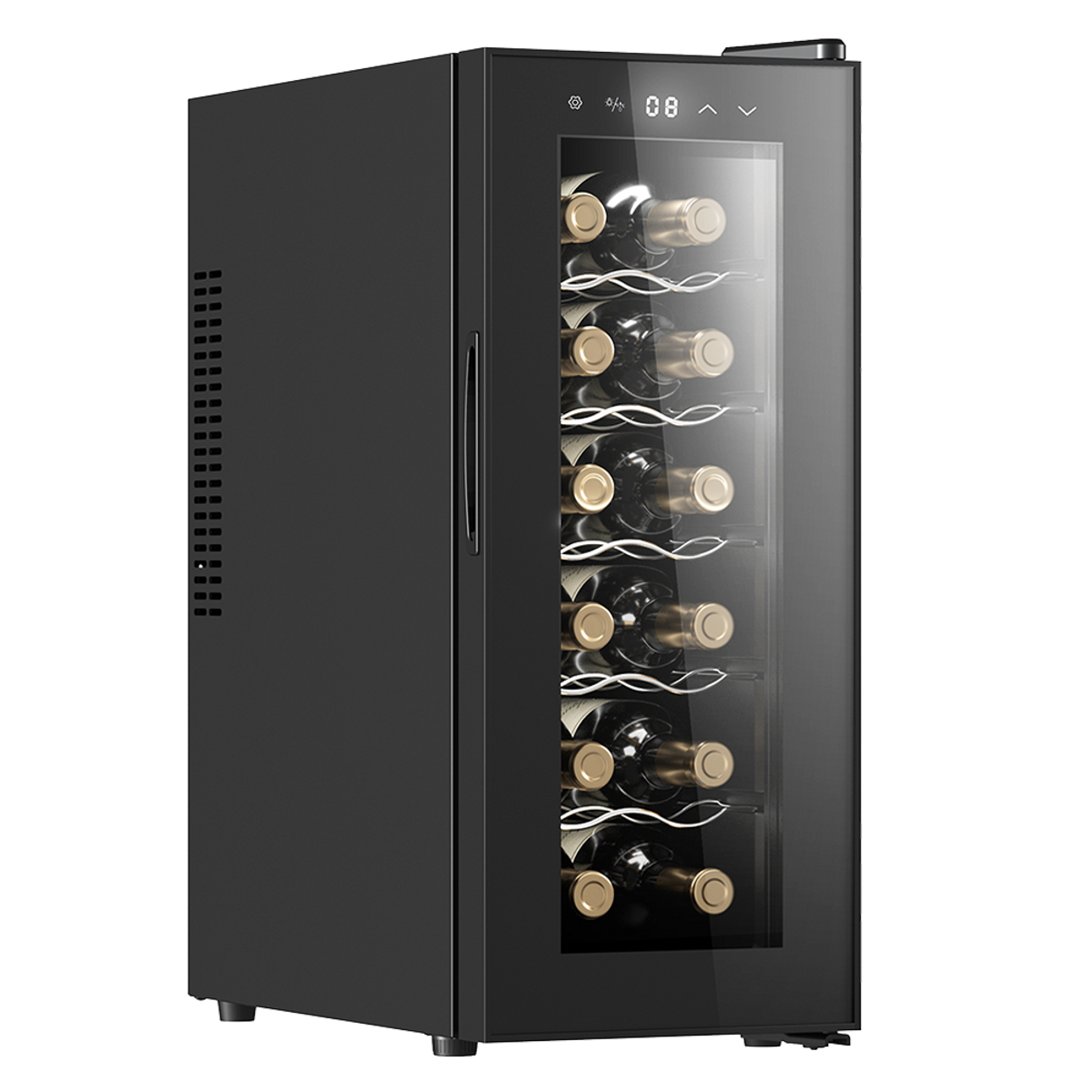 CECOTEC Bolero GrandSommelier 1250 CoolCrystal AURICOLARI, 12 bottiglie, 5 ripiani, dimensoni: L 26,6 cm, A 65,4 cm, P 51,5 cm, temperatura massima 18 °C, temperatura minima 8 °C, Nero, classe E