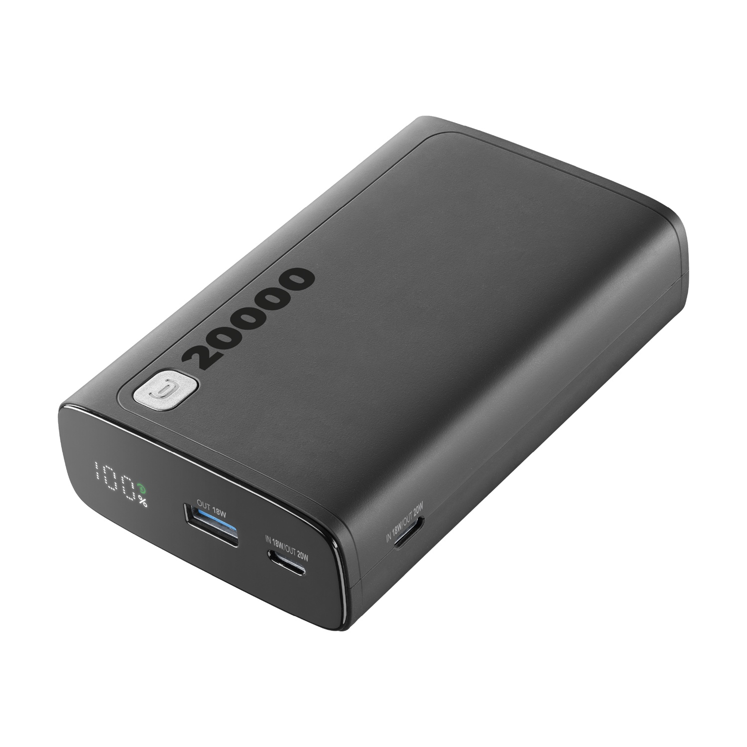 1x USB-C 20W PD input/output; 1x MICRO USB 10.5W input; 1x USB 18W output.