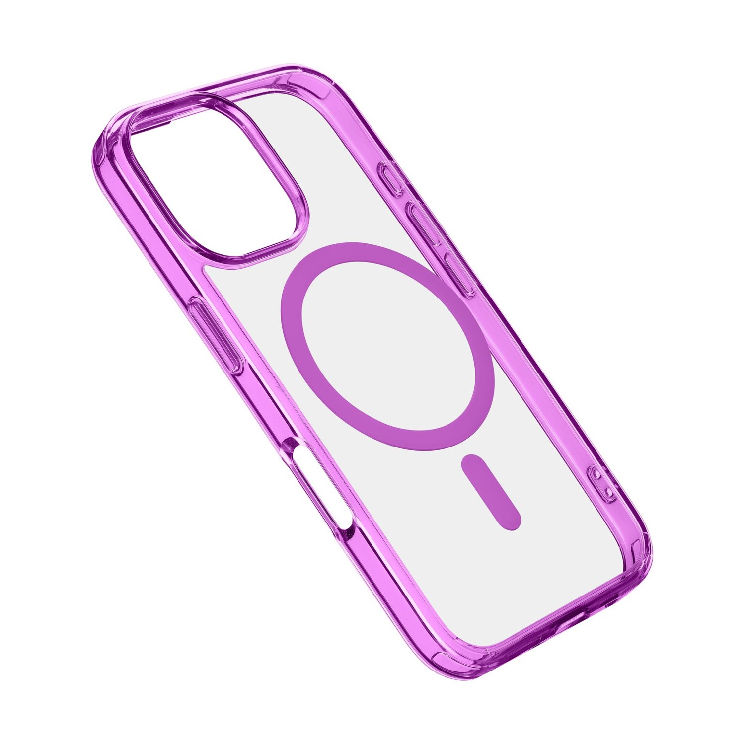 Bordi semi-trasparenti e magnete full color; Protegge bordi e connettori; Doppio materiale per una maggiore protezione; Bordi rialzati nell’area della fotocamera e del display; Compatibile con ecosistema MagSafe.