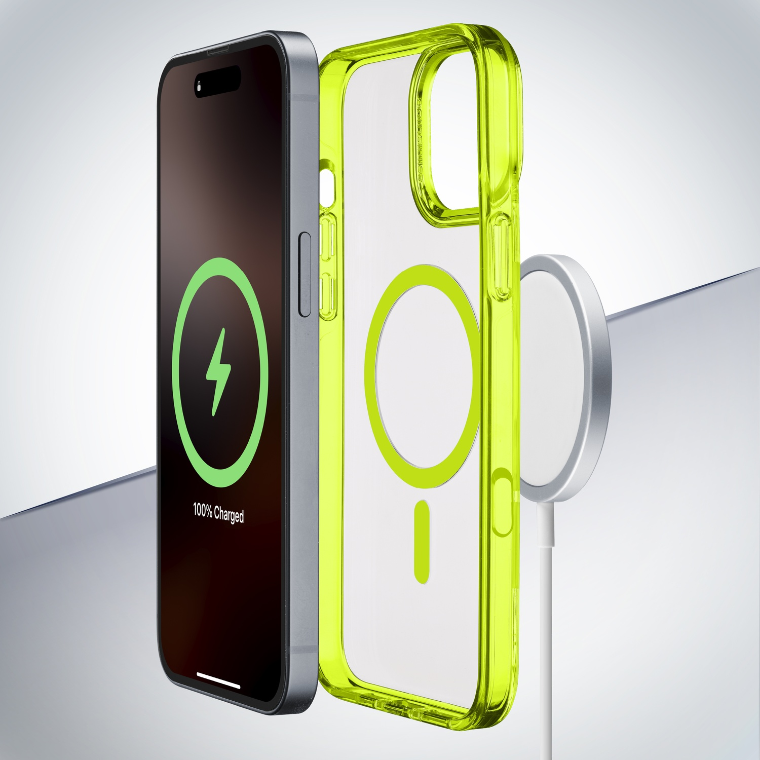 Bordi semi-trasparenti e magnete full color; Protegge bordi e connettori; Doppio materiale per una maggiore protezione; Bordi rialzati nell’area della fotocamera e del display; Compatibile con ecosistema MagSafe.