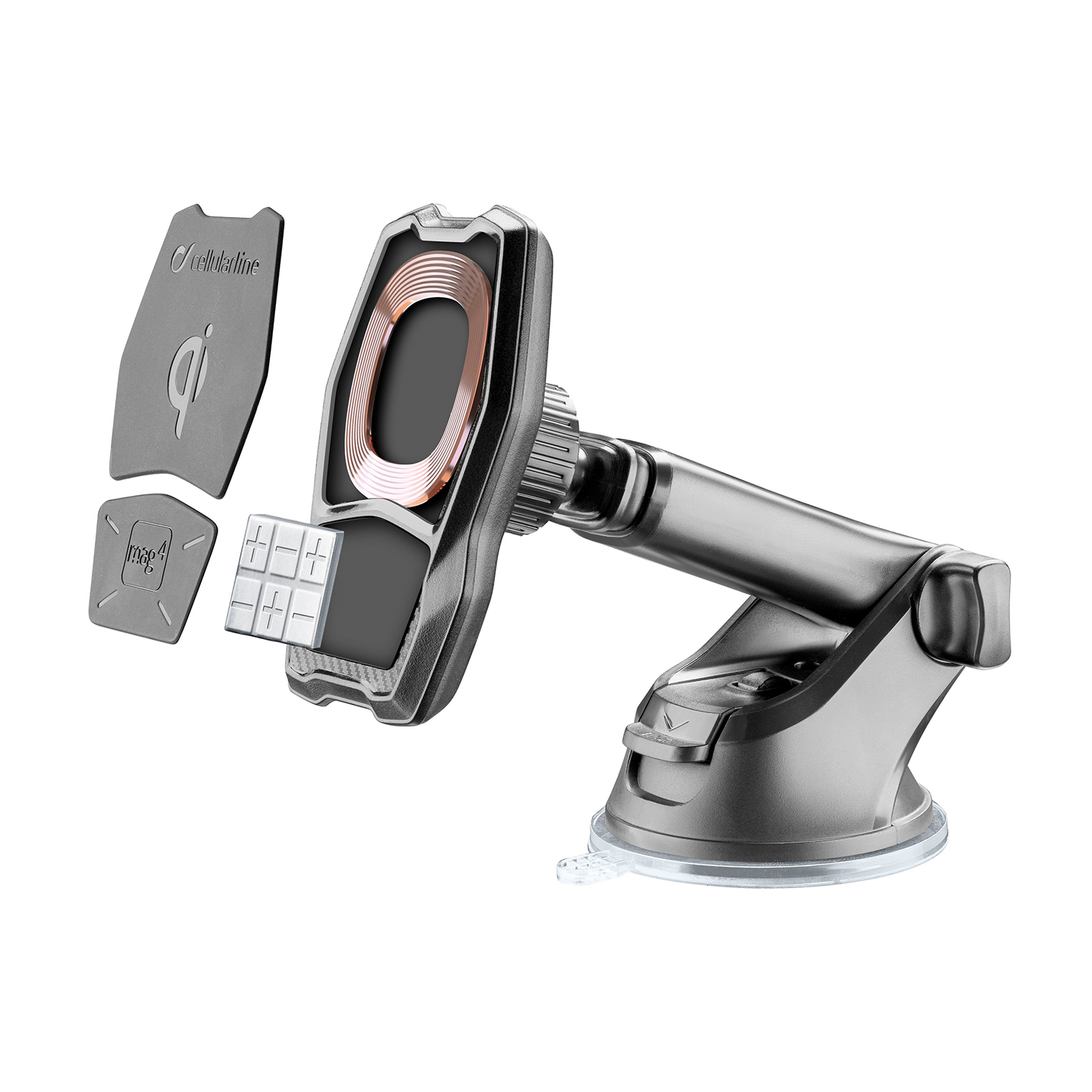 Base adesiva che non lascia residui ; Montaggio facile e veloce, tecnologia schermante sicura ed efficace ; Piastra metallica posizionabile sul telefono o dietro alla tua custodia ; Tecnologia magnetica MAG4: sicura, forte, semplice e stabile