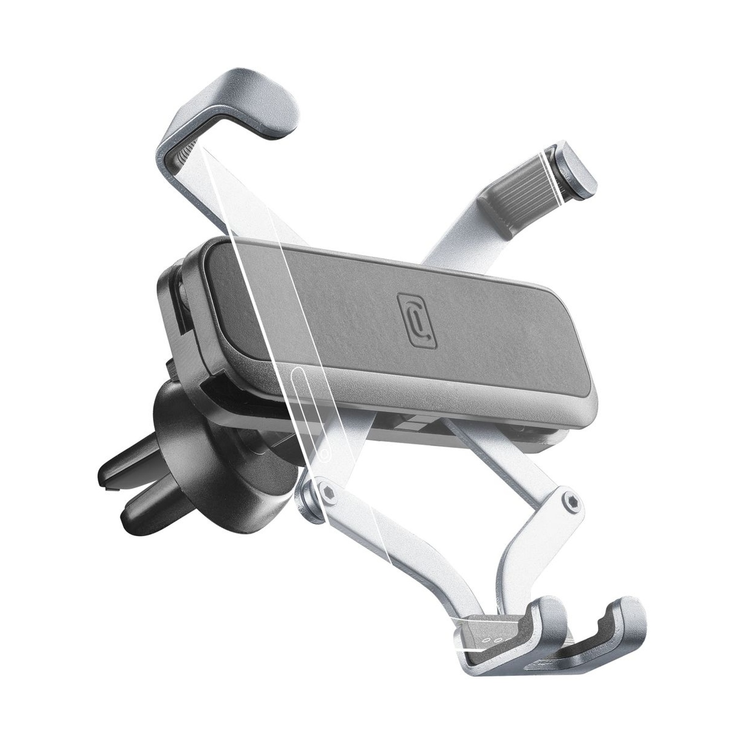 Sistema di inserimento nelle bocchette facilitato; Design retrattile: quando non in uso, il supporto si compatta per meglio integrarsi agli interni dell'abitacolo; Chiusura su tre lati; Fissaggio su bocchette di aerazione (standard e rotonde); Snodo a sfera orientabile