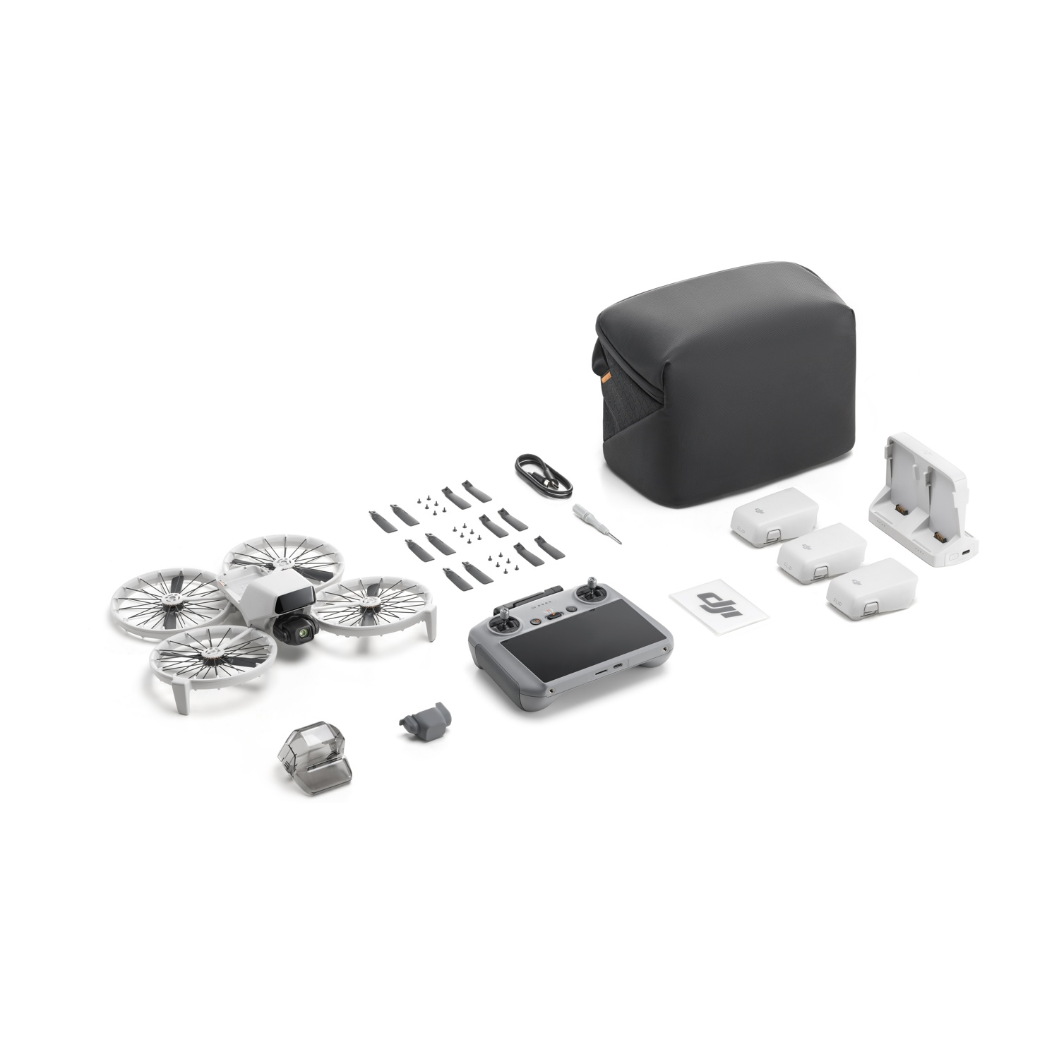 DRONE, DJI RC 2; 3x Batteria di volo intelligente per DJI Flip; 3x Eliche per DJI Flip (coppia, viti incluse); Cacciavite; Protezione dello stabilizzatore per DJI Flip; Cavo PD da tipo C a tipo C; Borsa a tracolla per DJI Flip; Stazione di ricarica multipla per DJI Flip.