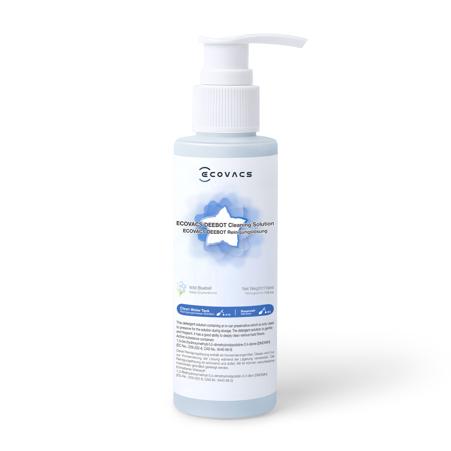 Soluzione detergente da diluire in acqua; Capacità: 110ml; Profumo: Campanula selvatica; Dosaggio consigliato: X1 OMNI/X1 TURBO: circa 15 Pompe(20ml); T10 TURBO: circa 10 Pompe(15ml); X1 PLUS/T10 PLUS/T10: circa 1 Pompa(1,5ml).