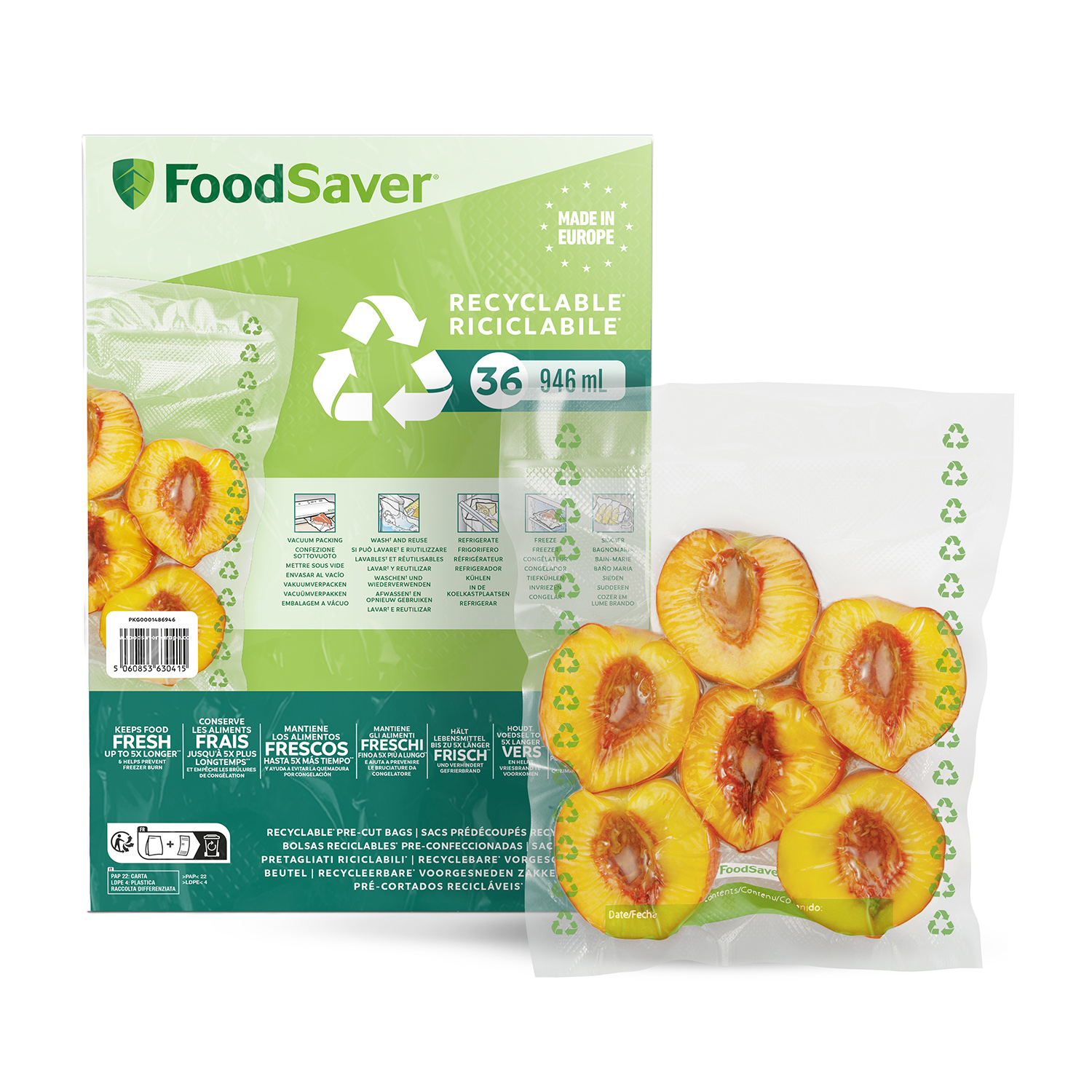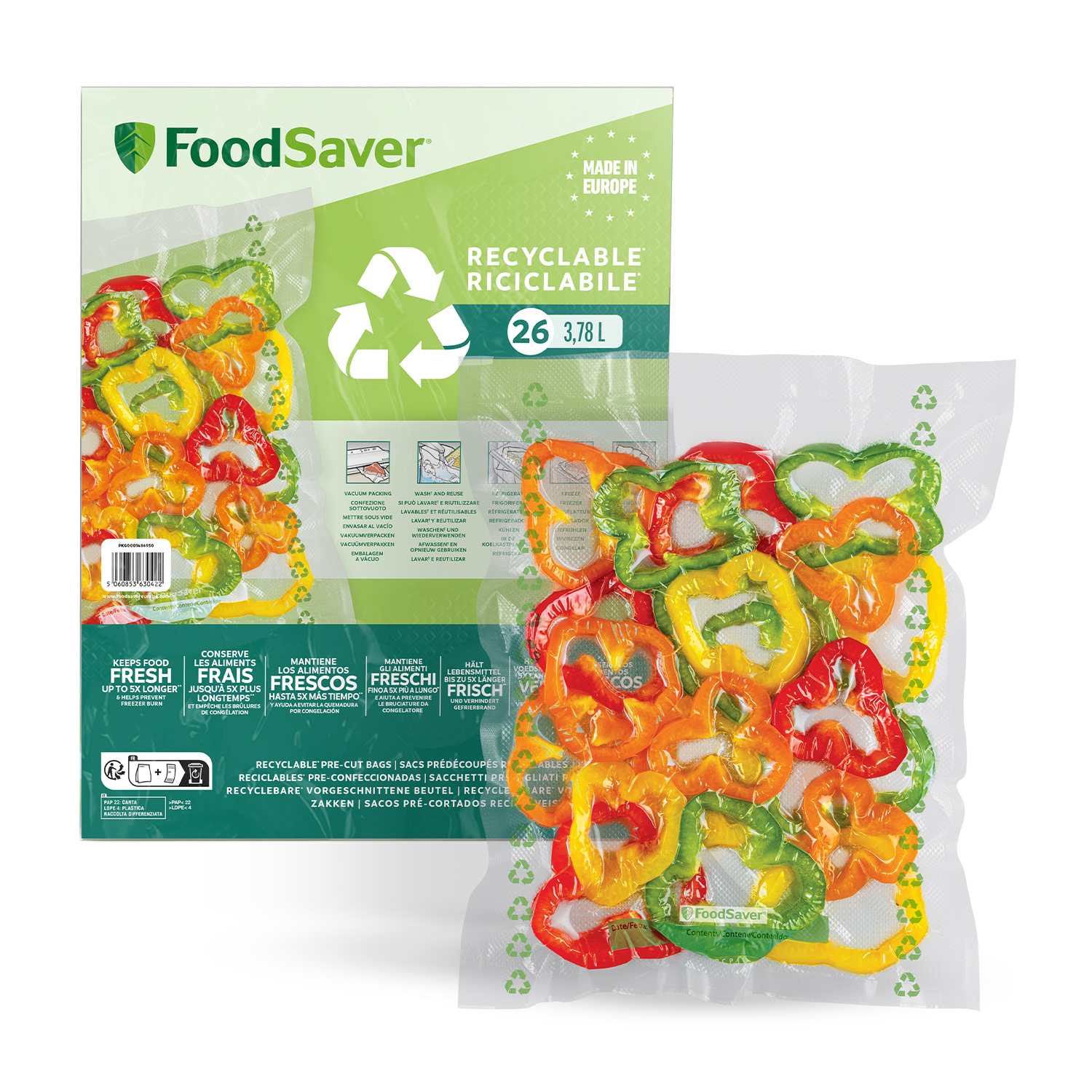 SACCHETTI SOTTOVUOTO FOODSAVER 26 sacchetti ricicl 3,87l