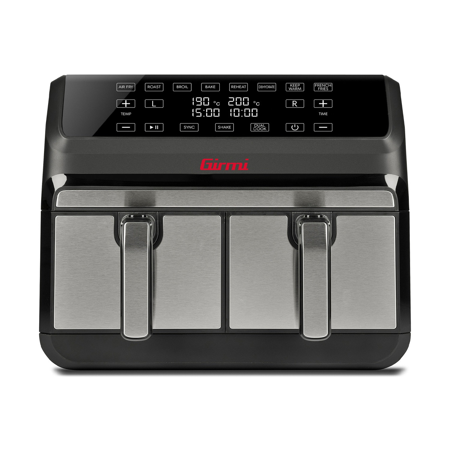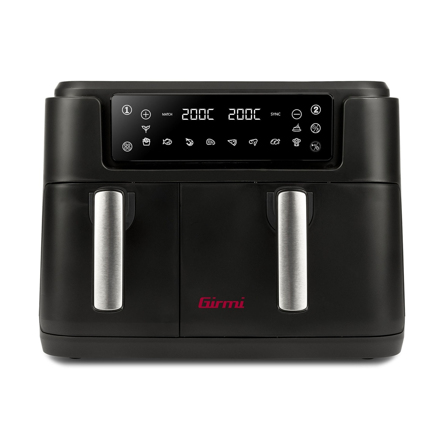 FRIGGITRICE AD ARIA GIRMI Ecofrit Bis, capacità 8 l, doppio cestello (4l +4l), Max potenza 1700 W, 8 modalità di cottura, Nero/Silver
