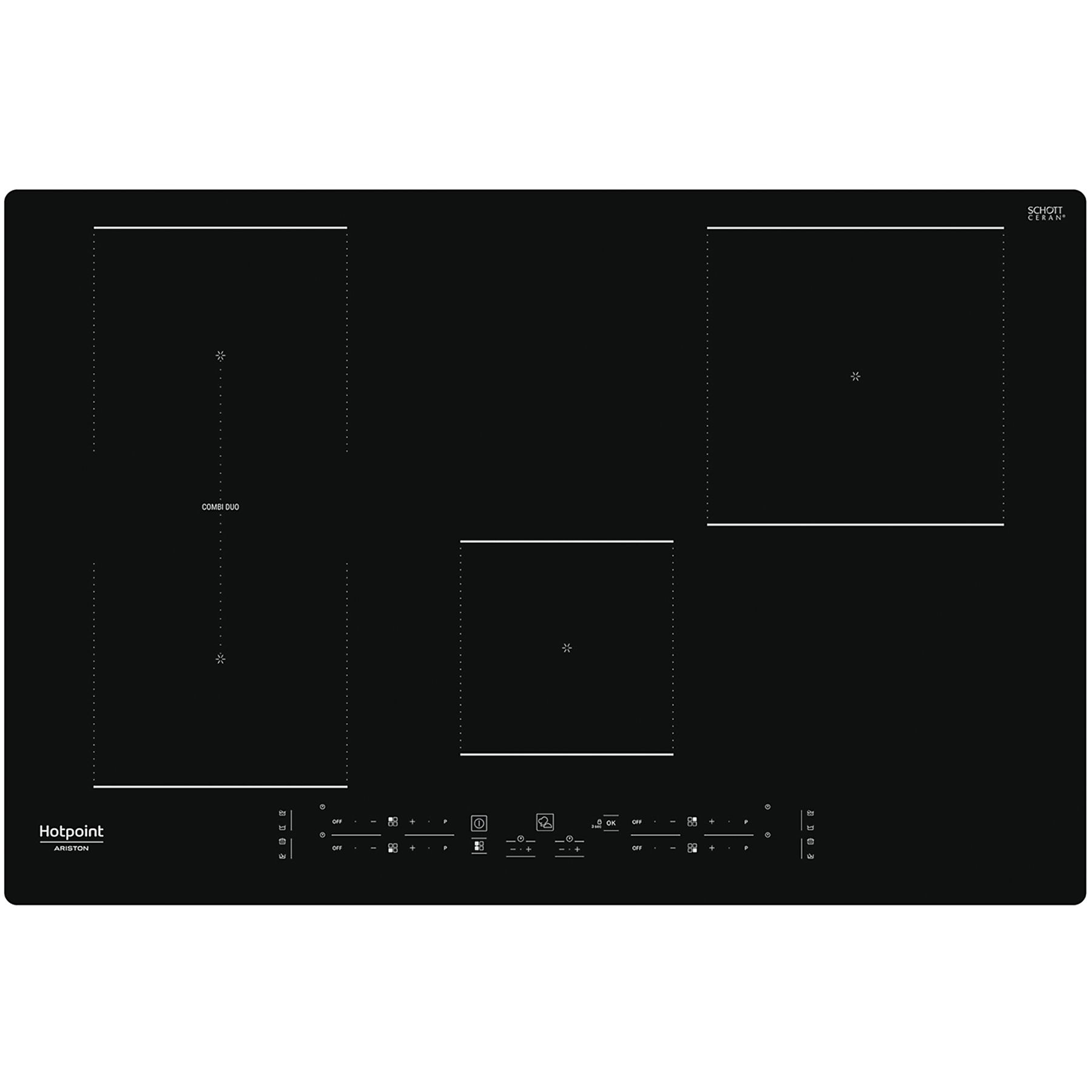 HOTPOINT HB 0577B NE PIANO COTTURA A INDUZIONE, 4 zone di cotura, dimensioni: L 770 mm, P 510 mm, piano in Vetroceramica, Nero
