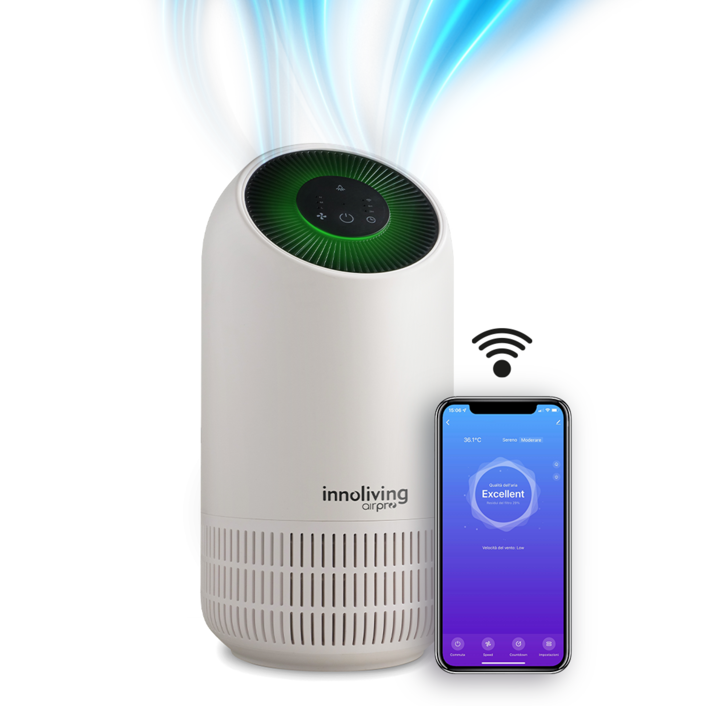 Purificatore d'aria Ercole filtro HEPA e carboni attivi Smart Wi-fi INNOLIVING INN-554
