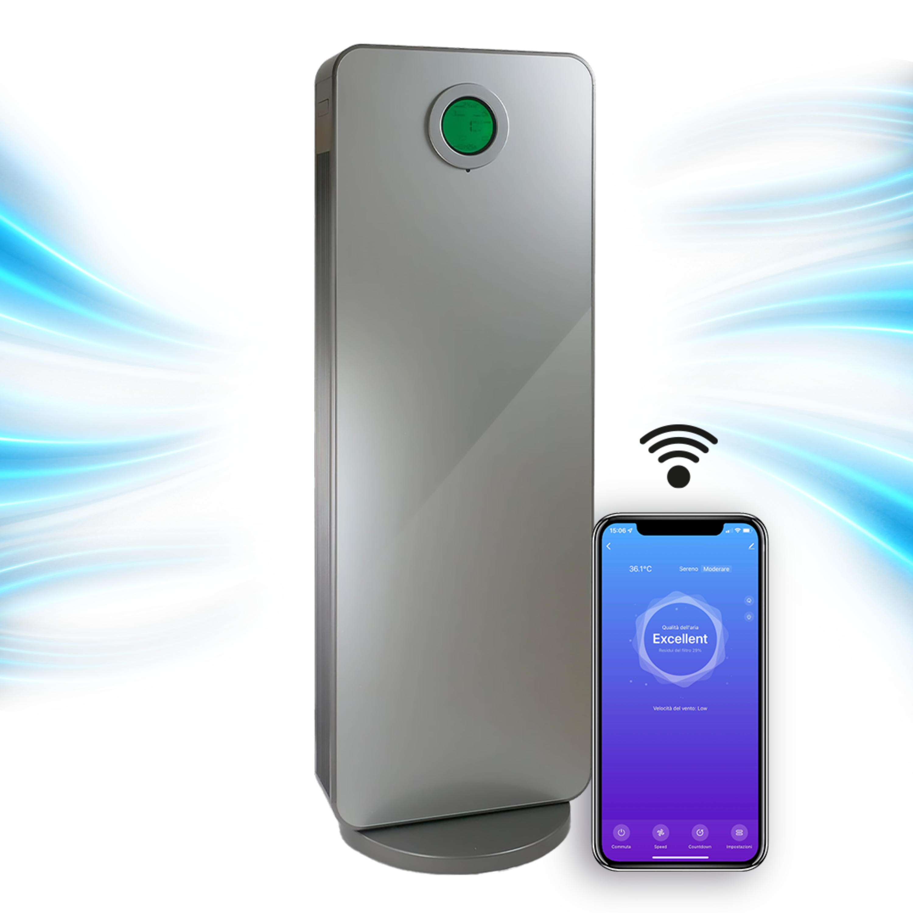 Purificatore d'aria Ercole filtro HEPA e carboni attivi Smart Wi-fi