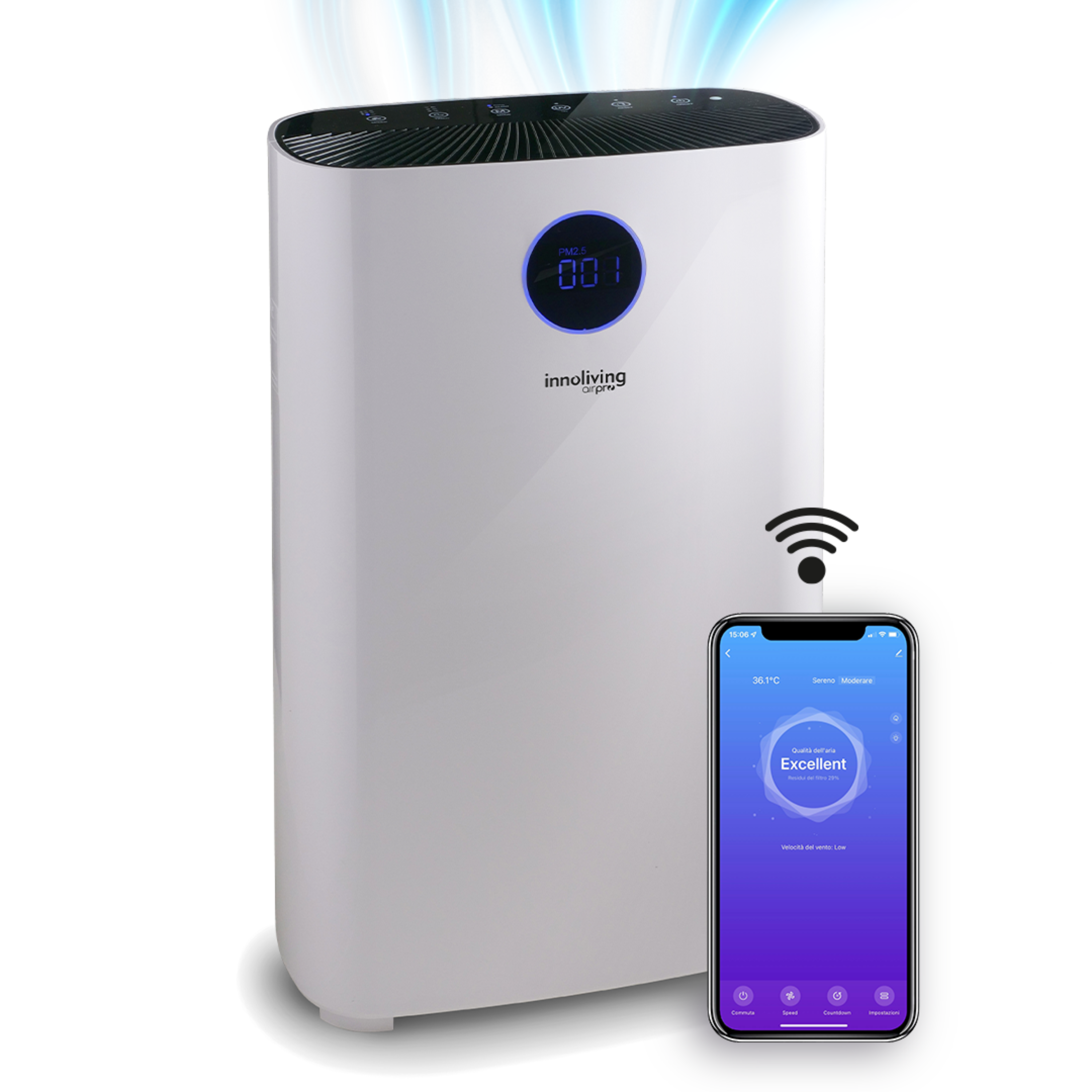 Purificatore d'aria Ercole filtro HEPA e carboni attivi Smart Wi-fi INNOLIVING INN-560