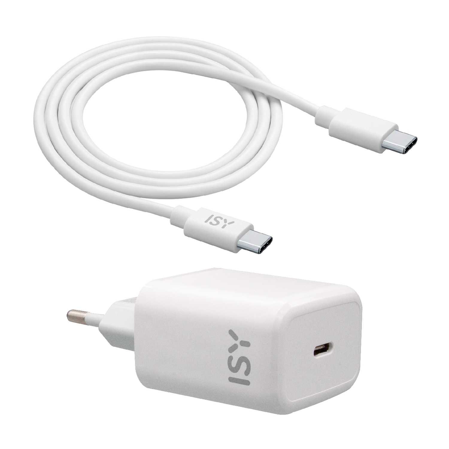 Caricabatteria ISY ITC-0015 Caricatore da 20W, 1 porta Type-C + cavo Type-C 1 metro, bianco