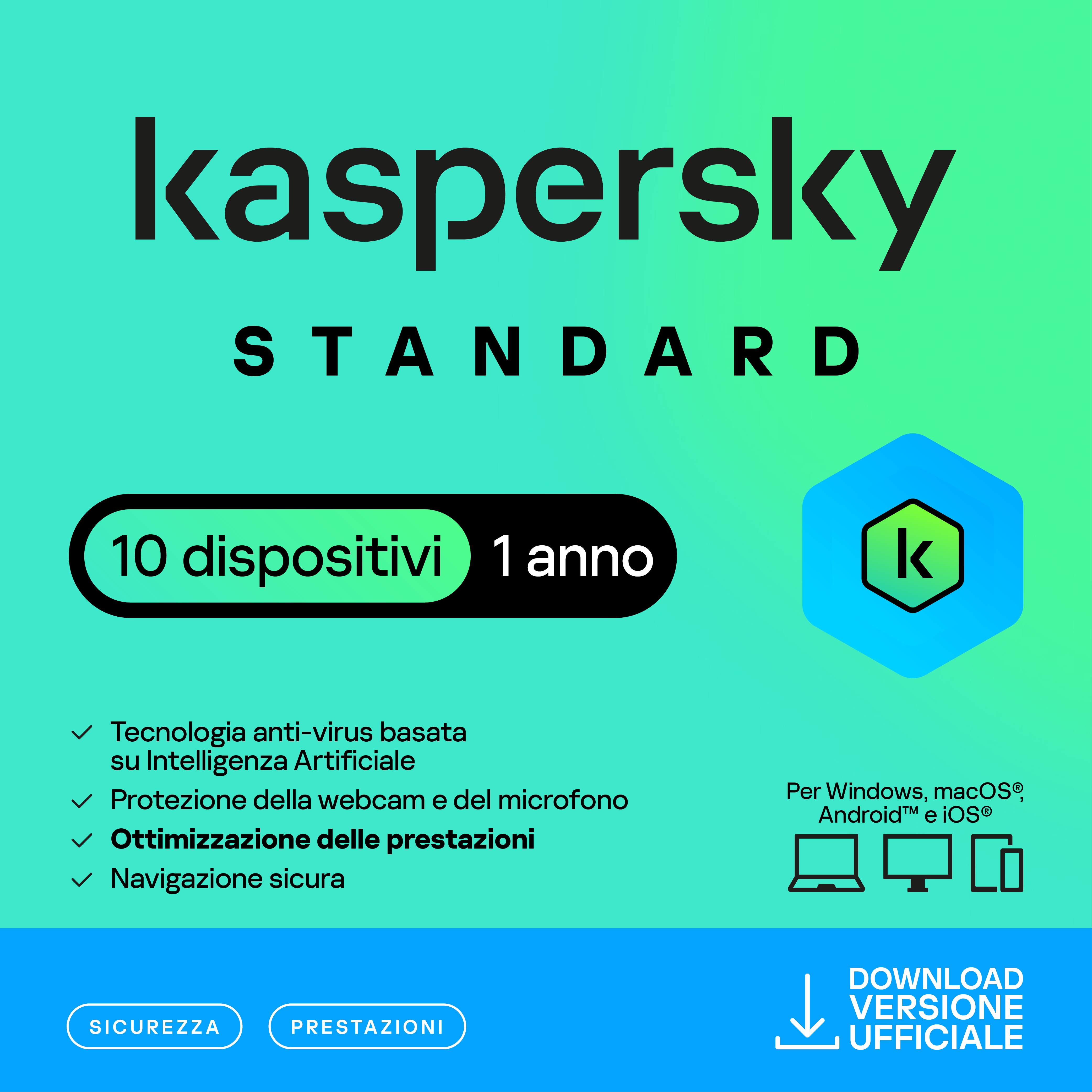 KASPERSKY ANTIVIRUS Versione Standard - Software PC, Tablet, Smartphone – 10 Device - Abbonamento 1 Anno