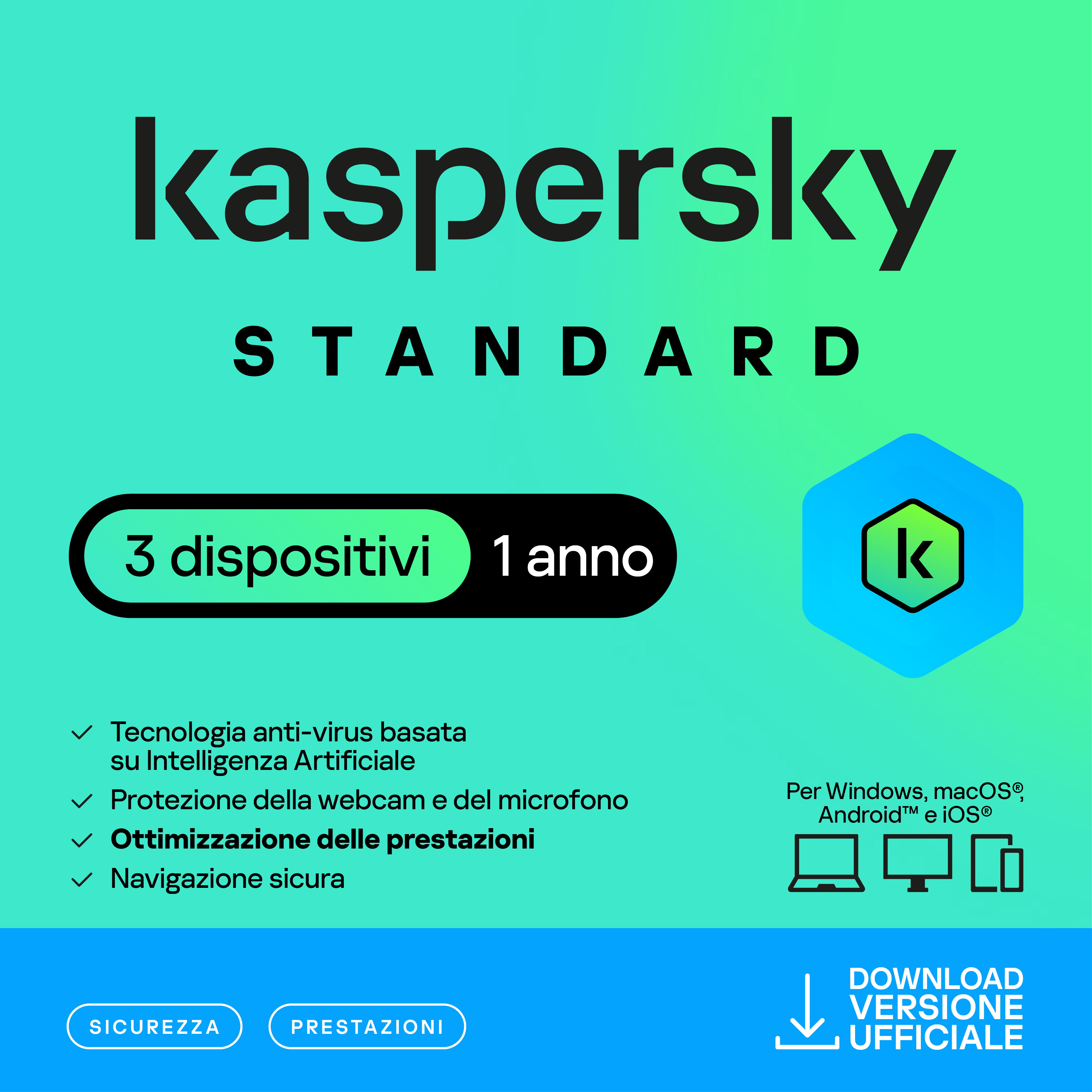 KASPERSKY ANTIVIRUS Versione Standard - Software PC, Tablet, Smartphone – 3 Device - Abbonamento 1 Anno