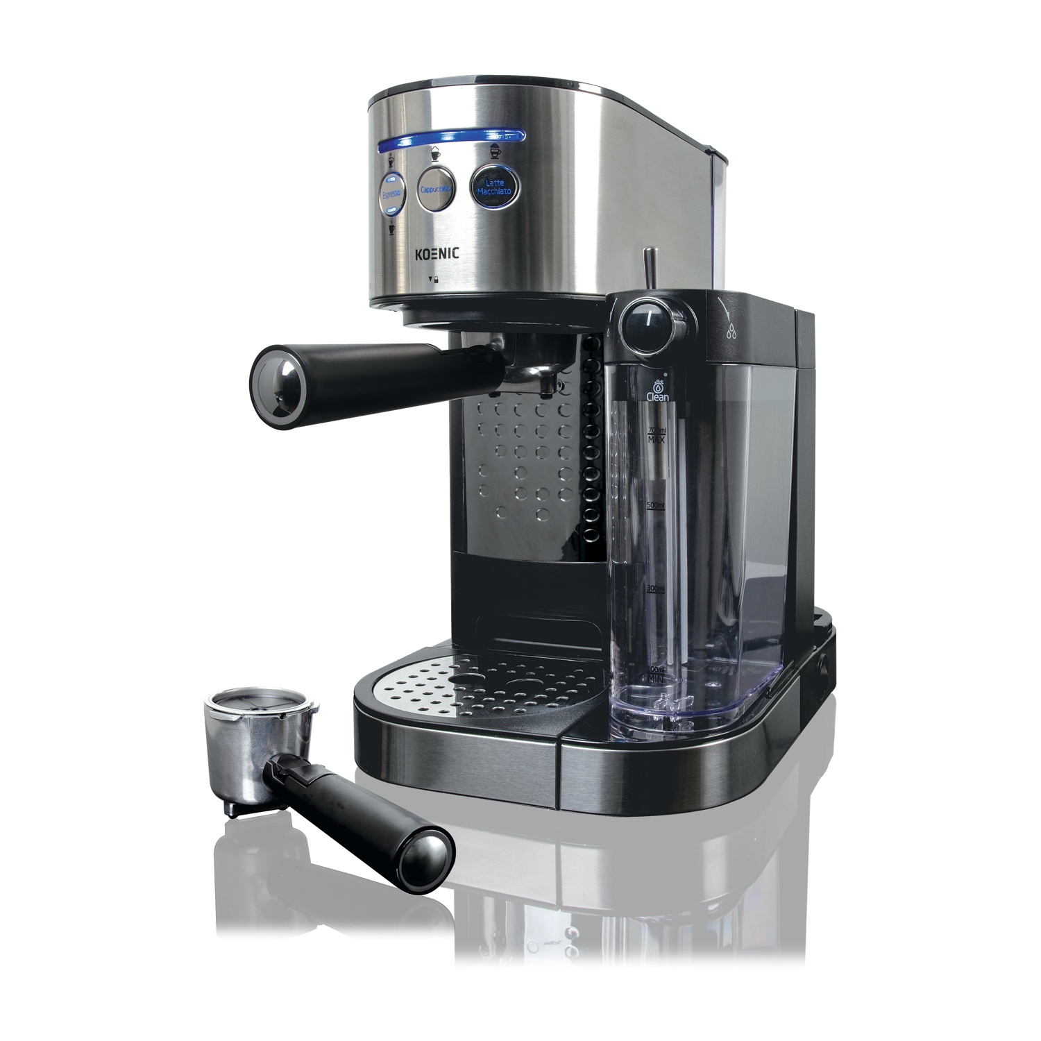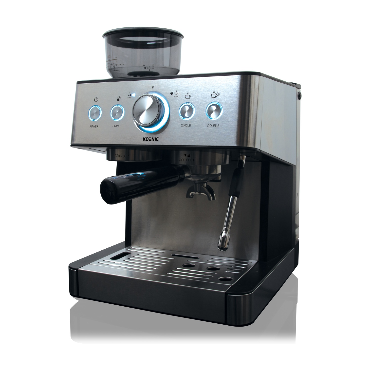 Macchina per caffè Espresso KOENIC KEM 21524 M, Compatibile con Caffè in grani e Macinato, 1650 W, 15 bar, Serbatoio acqua 2.3 L