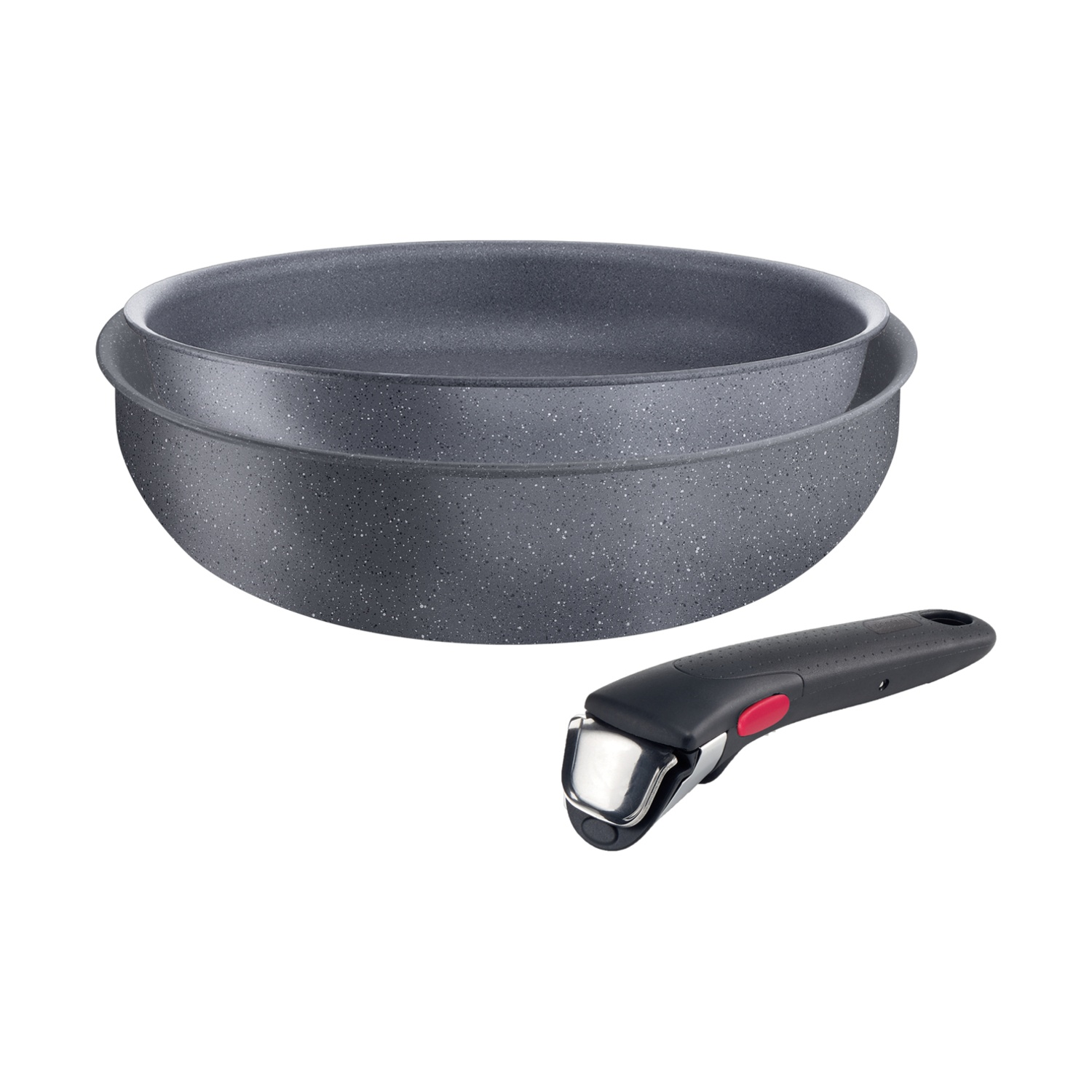 Set padelle + manico LAGOSTINA Ingenio Mineralis, 3 pezzi, Compatibile con Induzione e Gas, Ø24/28 cm, Alluminio, Rivestimento Mineralis antiaderente, Grigio scuro