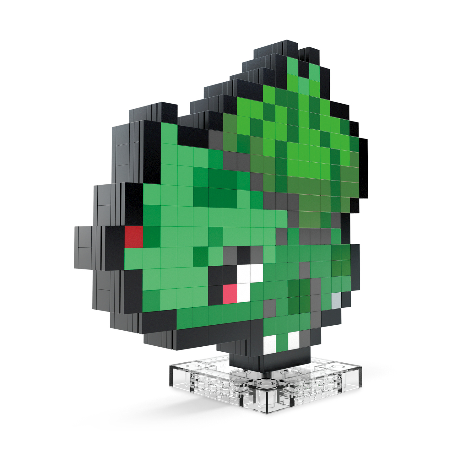 Costruibile figura Bulbasaur; Stand 6 pollici di altezza con mattoni in stile pixel; set include una base piatta e tacca sul retro per il montaggio a parete.
