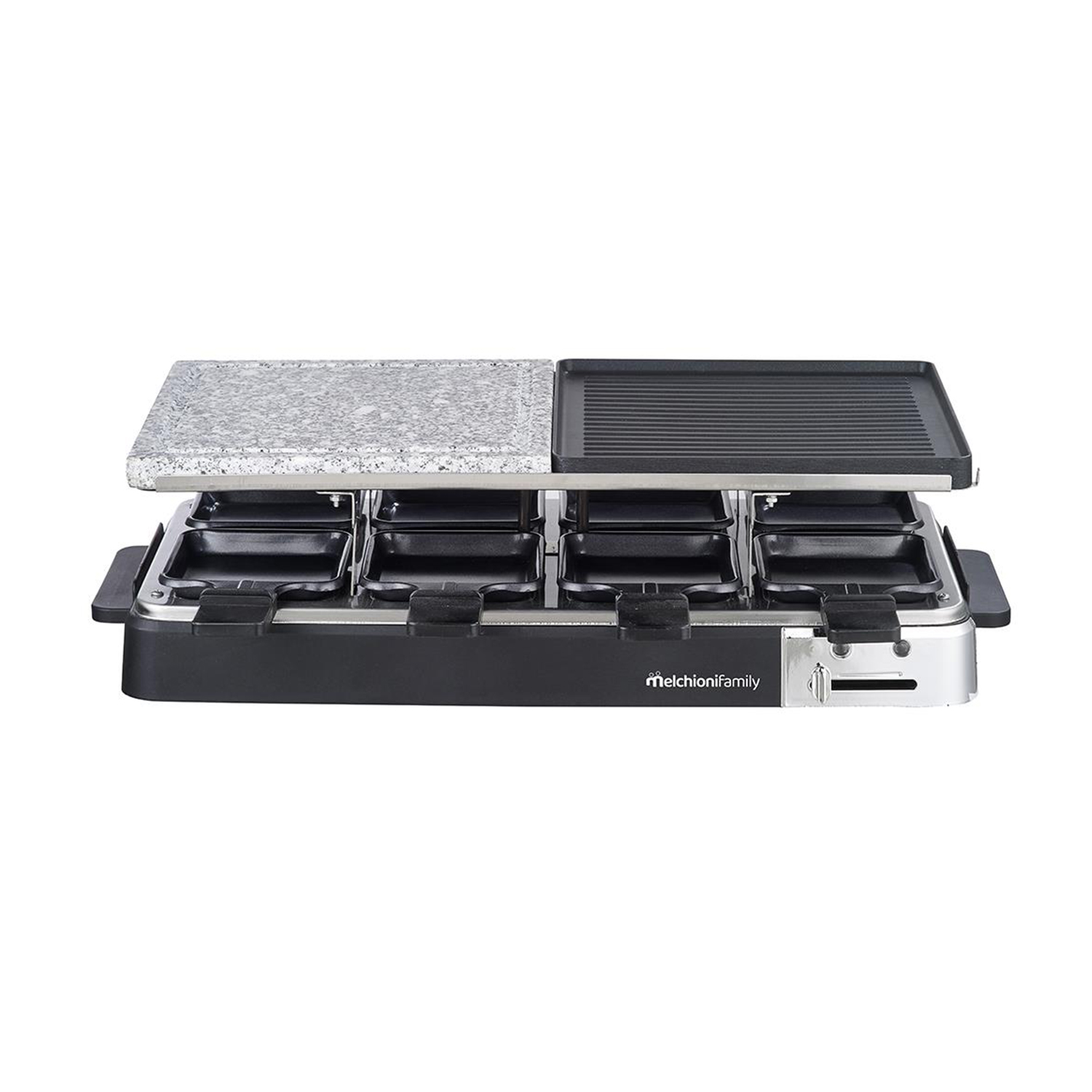 Raclette MELCHIONI FAMILY OLIMPIA, 1200W, in metallo e pietra, con piastre antiaderenti removibili e lavabili in lavastoviglie