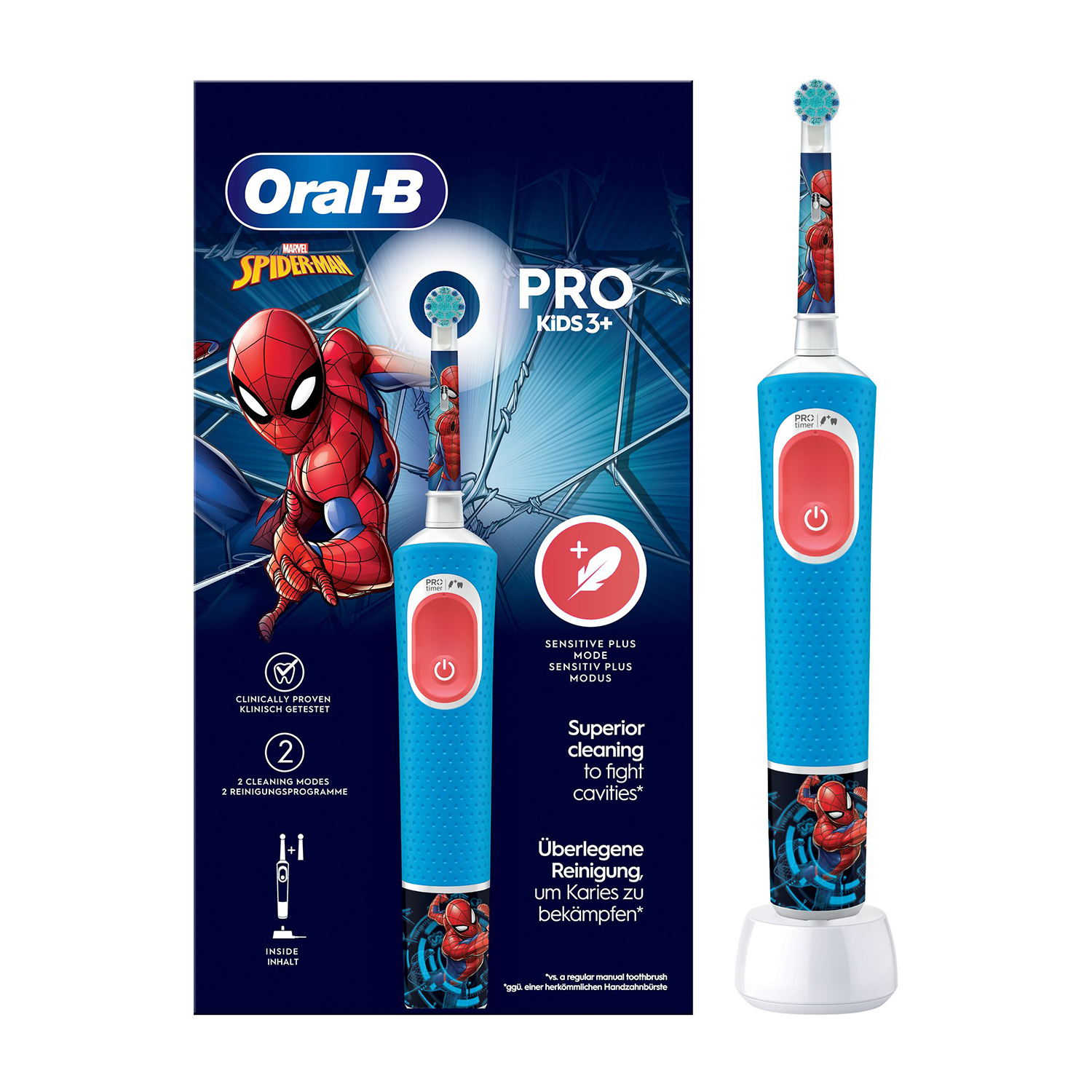 Spazzolino elettrico ORAL-B PRO KIDS 3+ SPIDERMAN, 3 programmi e 1 testina di ricambio