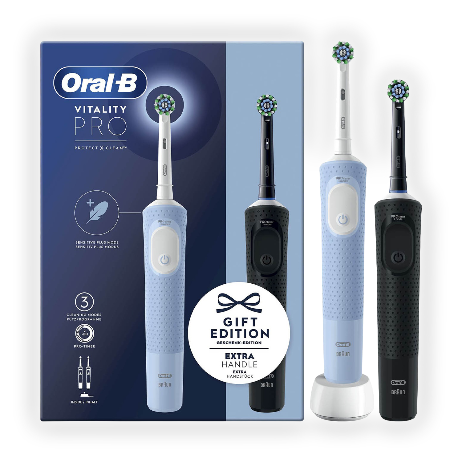 Spazzolino elettrico ORAL-B VITALITY PRO DUO GIFT EDITION, 3 programmi, Azzurro e Nero