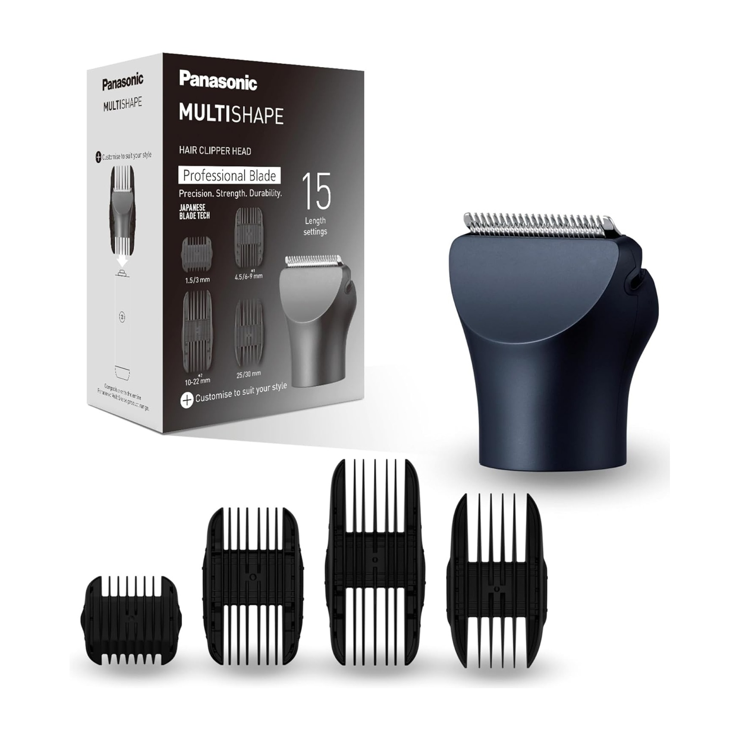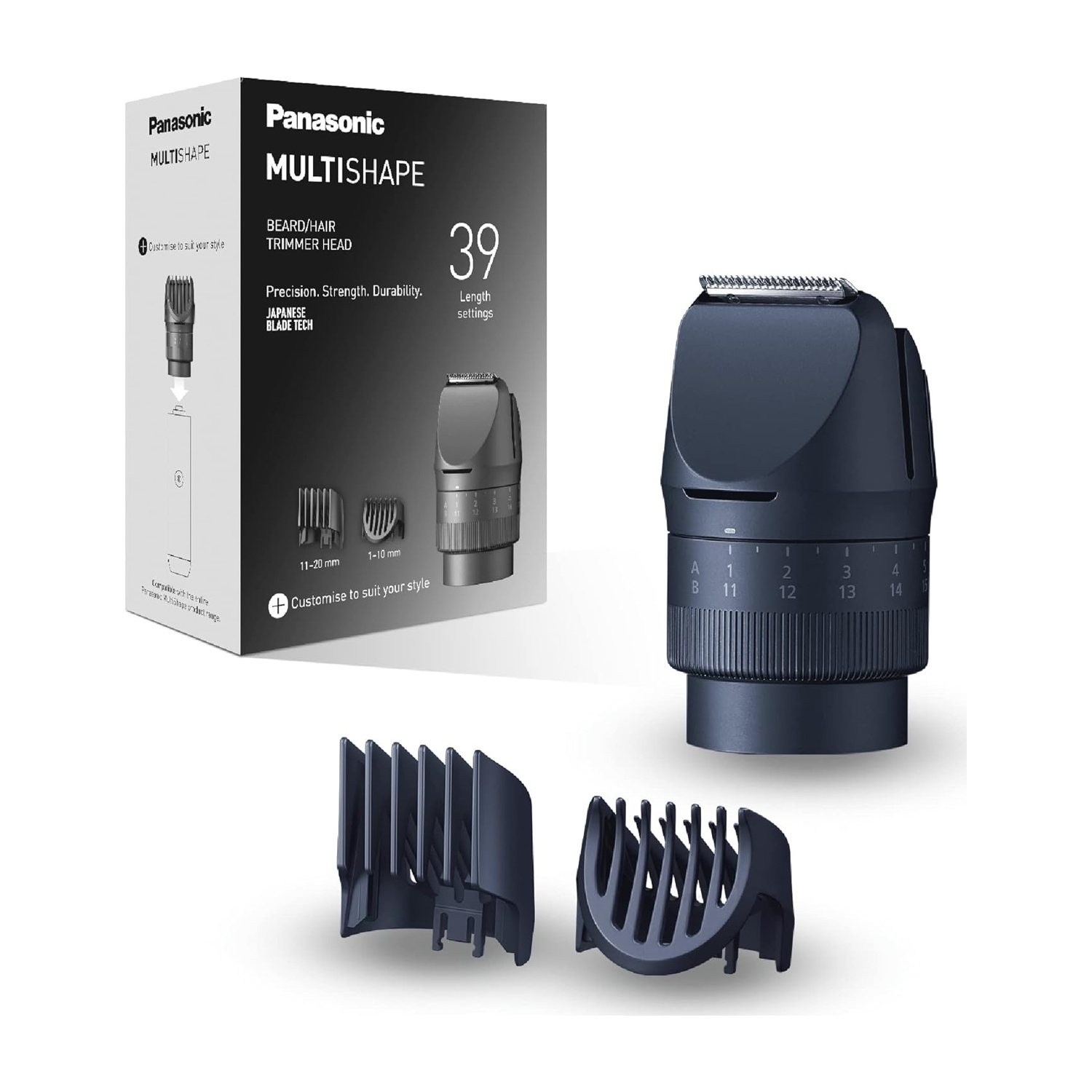 Rasoio + 3 attacchi: pettine barba regolabile 0,5-10 mm, pettine capelli 11-20 mm, pettine corpo 1,5 mm + spazzolina di pulizia + olio lubrificante + alimentatore AC 100-240 V